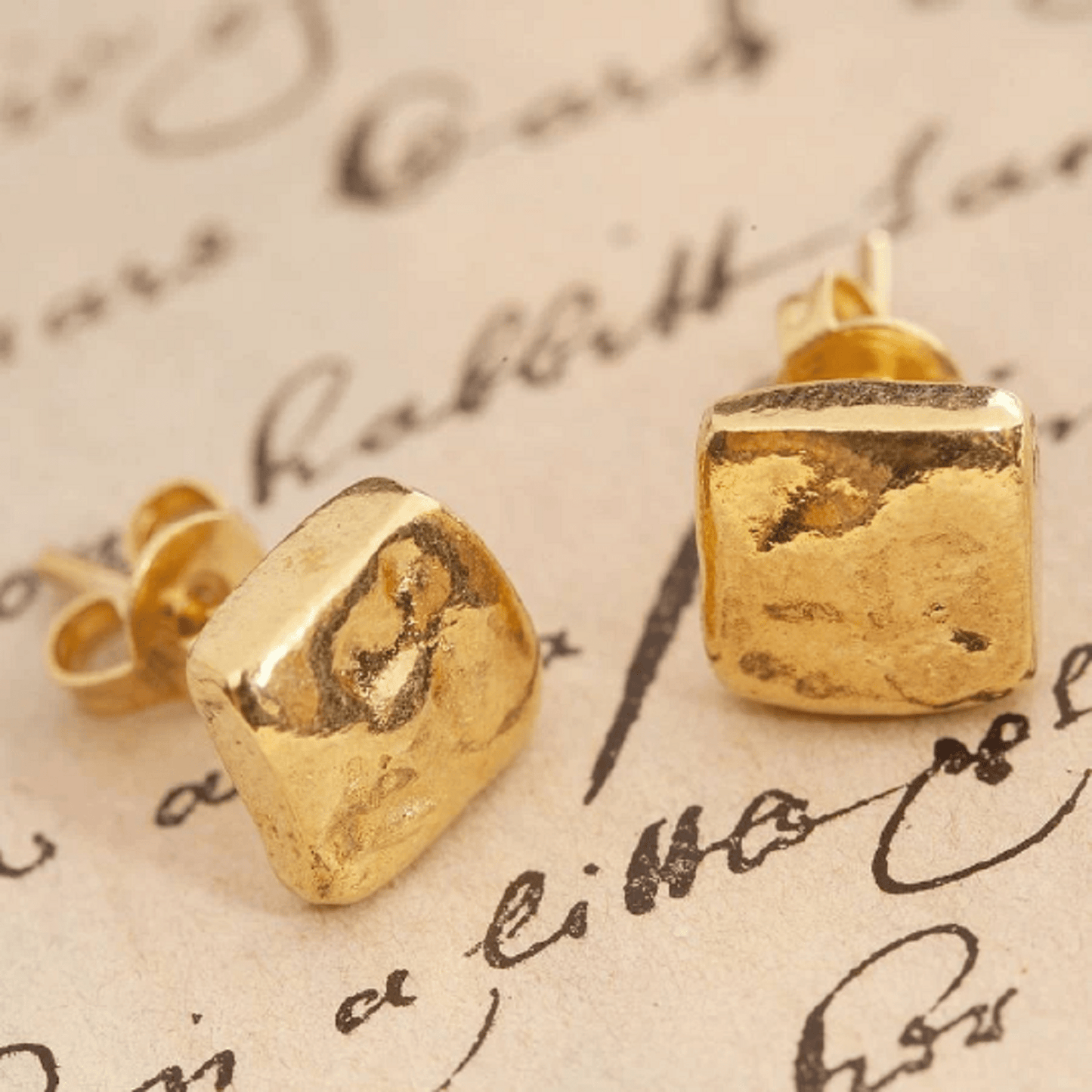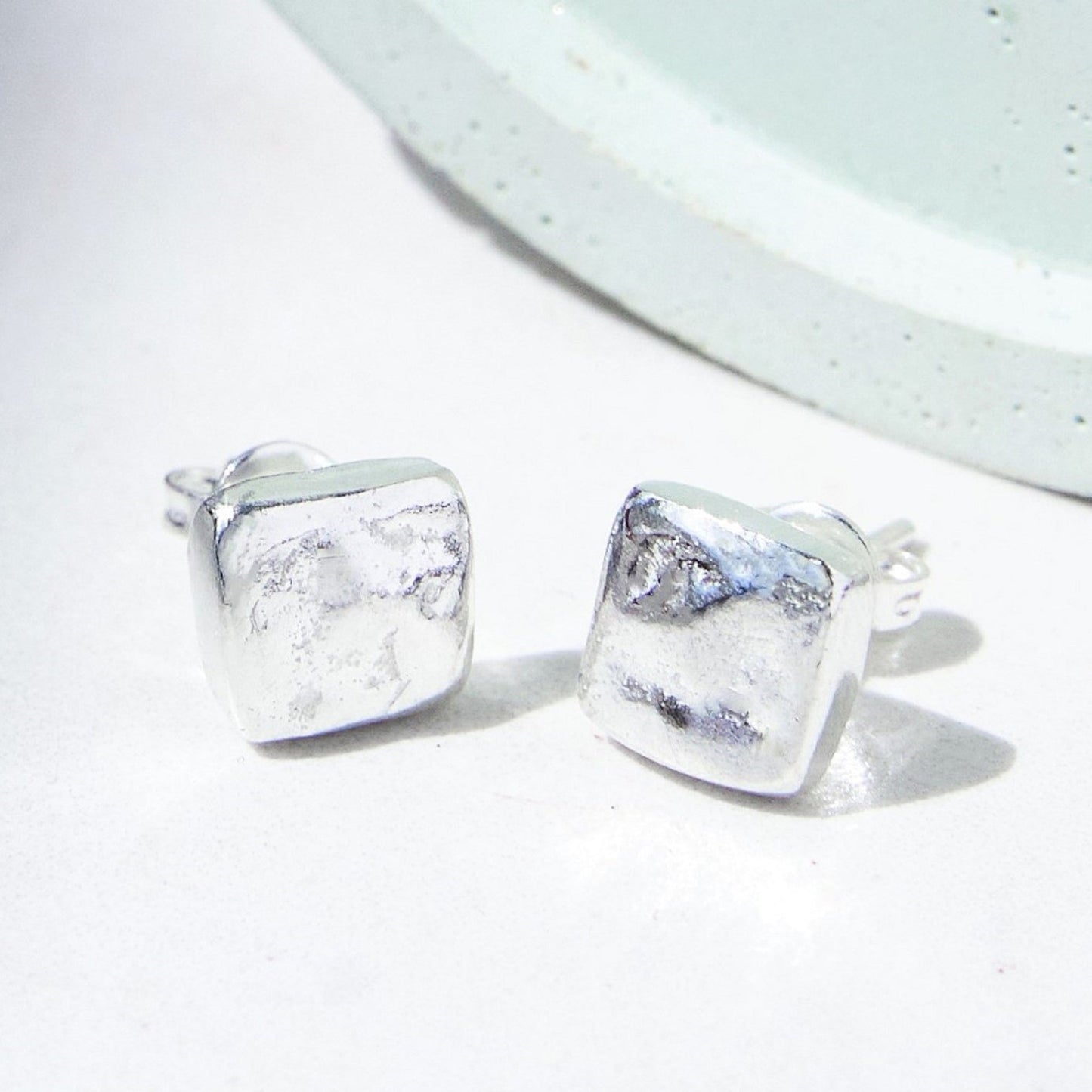 Organic Square Silver Stud Earrings - Otis Jaxon Silver Jewellery