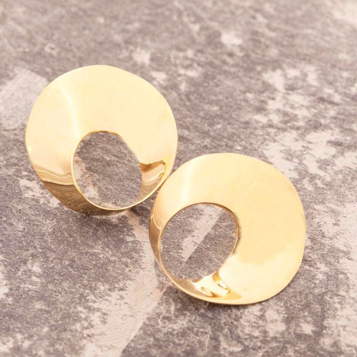 Esoteric and extremely contemporary forms define these beautiful highly polished Gold Swirl Round Sterling Silver Stud Earrings. Essentially uncomplicated, casual and wearable anytime, anyplace. An Otis Jaxon classic.