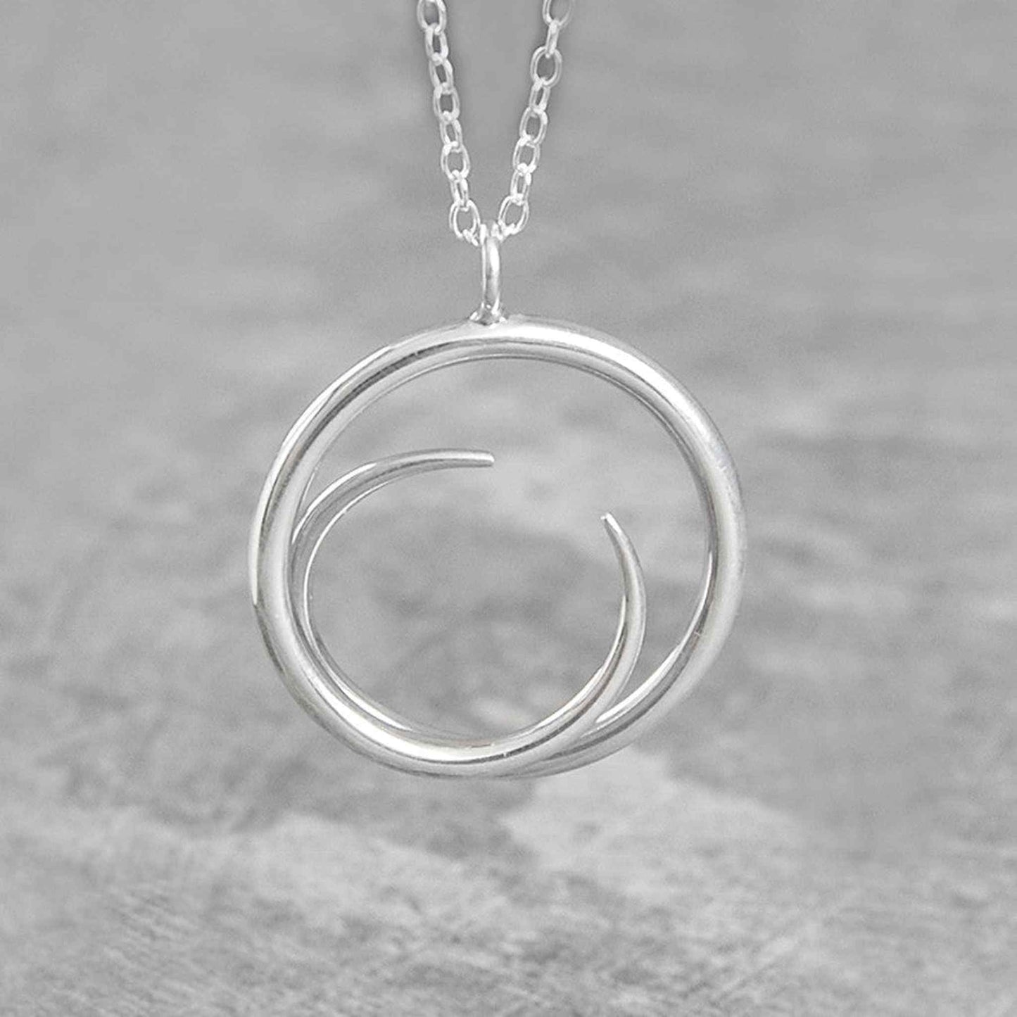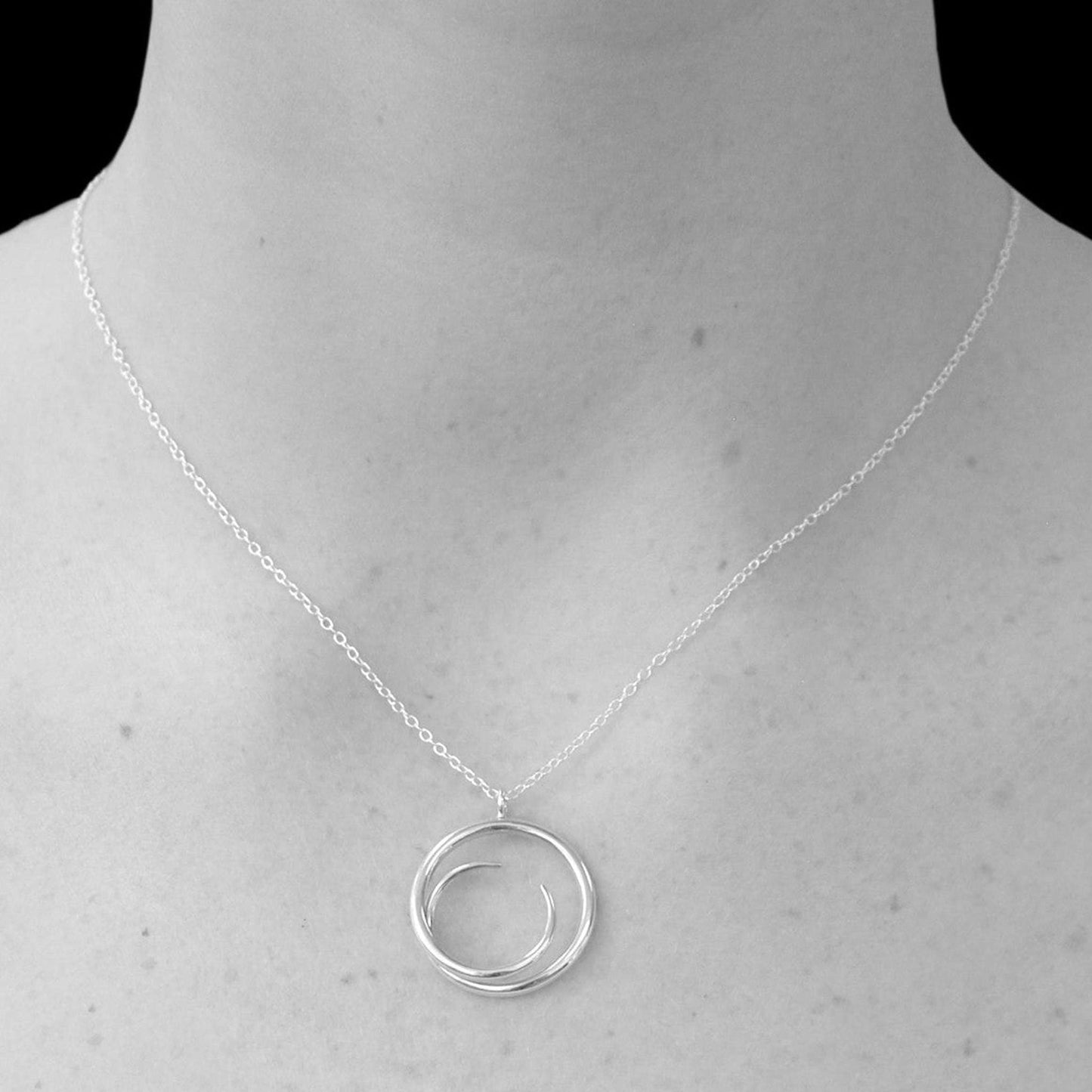 This sterling silver Tapered Round Silver Pendant is shaped by hand to create an overlapping circle that sits beautifully on the neck Modern, stylish and contemporary.