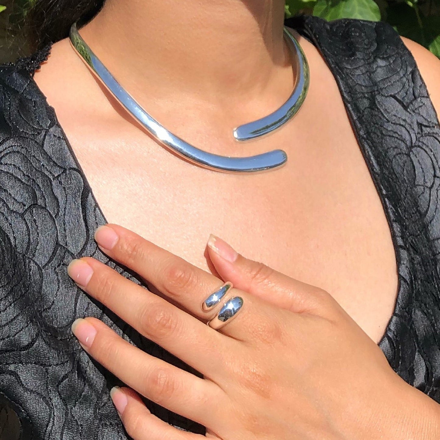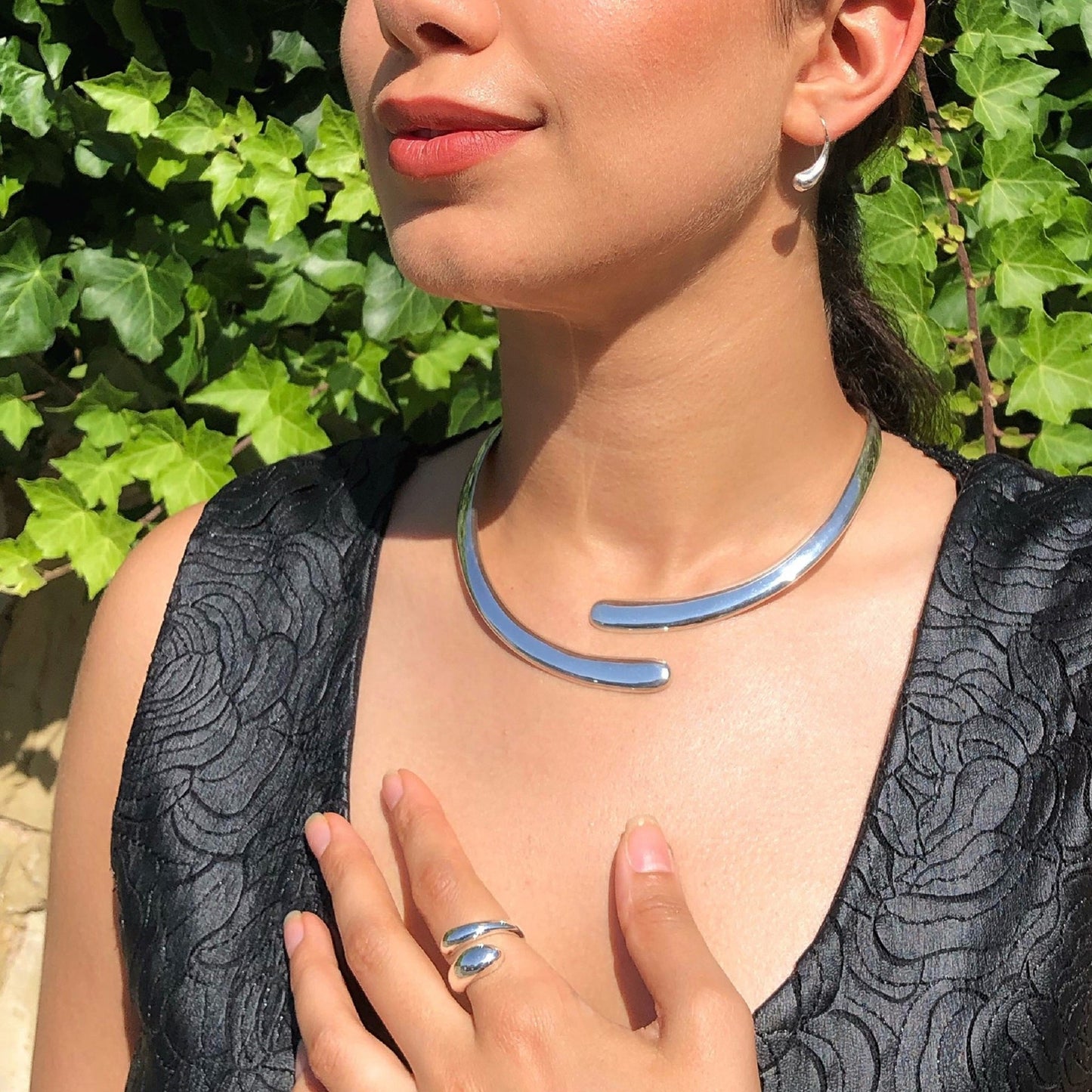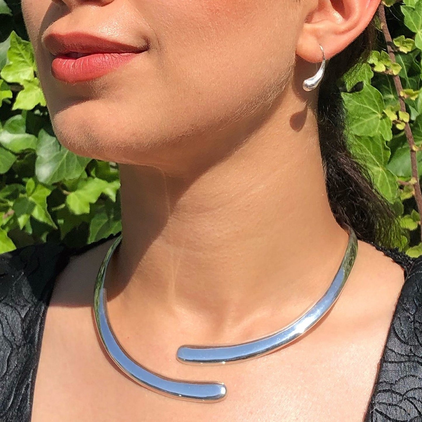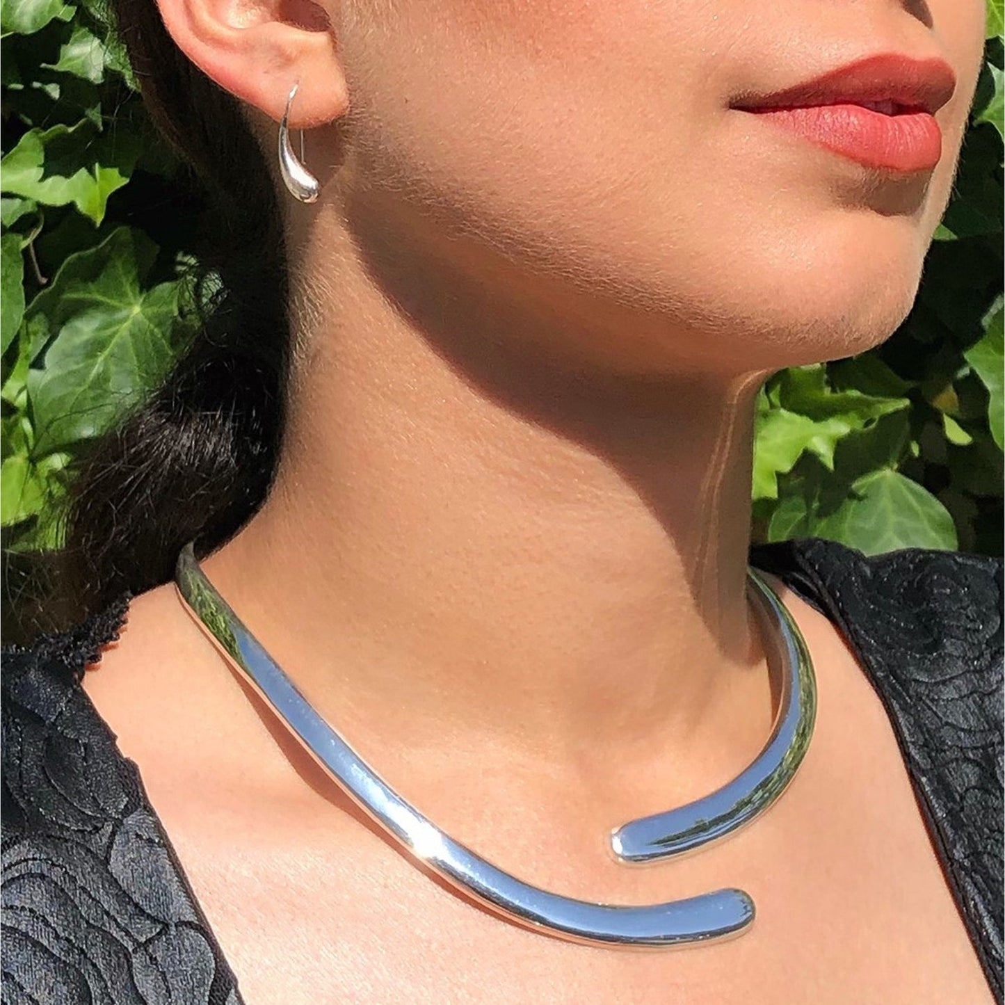 Contemporary jewellery at its finest, this solid sterling silver choker features two overlapping polished silver bars, which will complement beautifully your outfits for any special occasions!