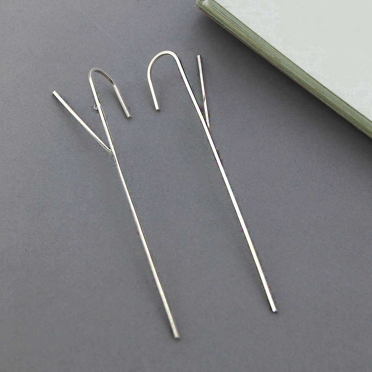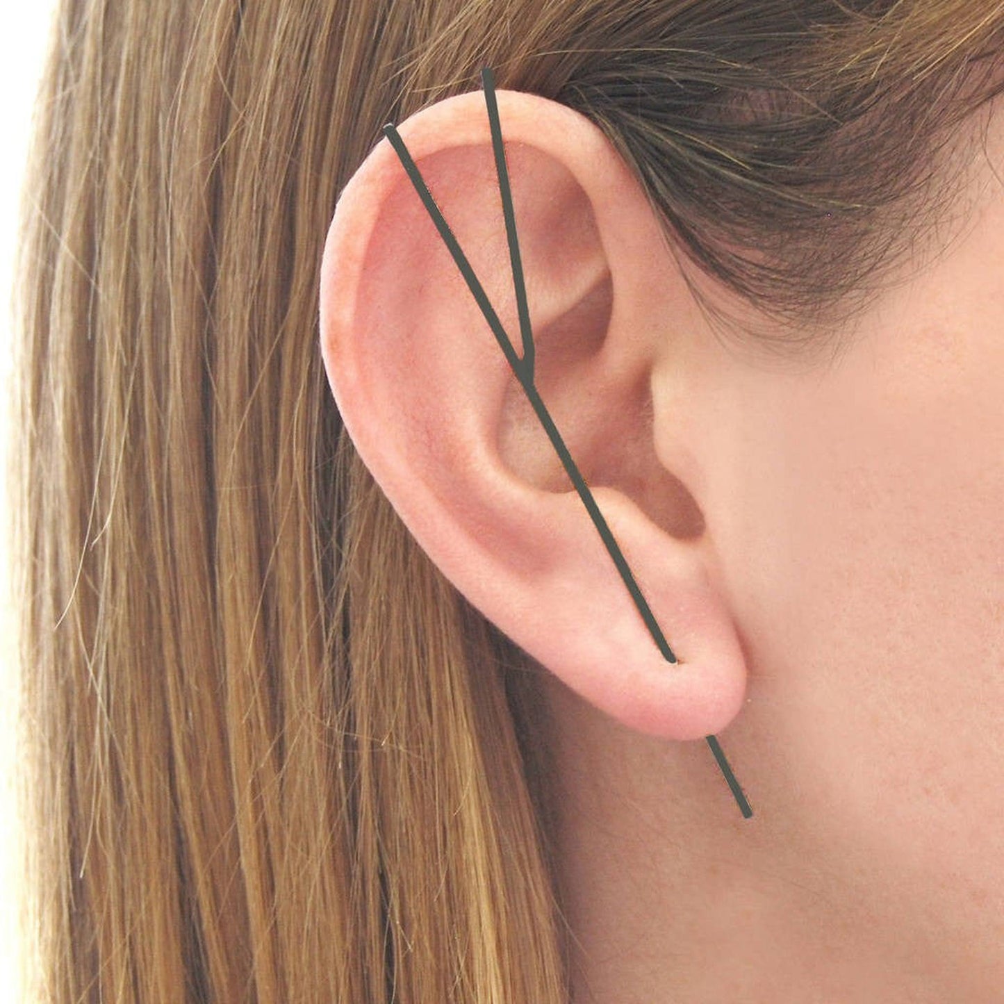 Black Oxidised Silver Split Bar Ear Cuff Earrings