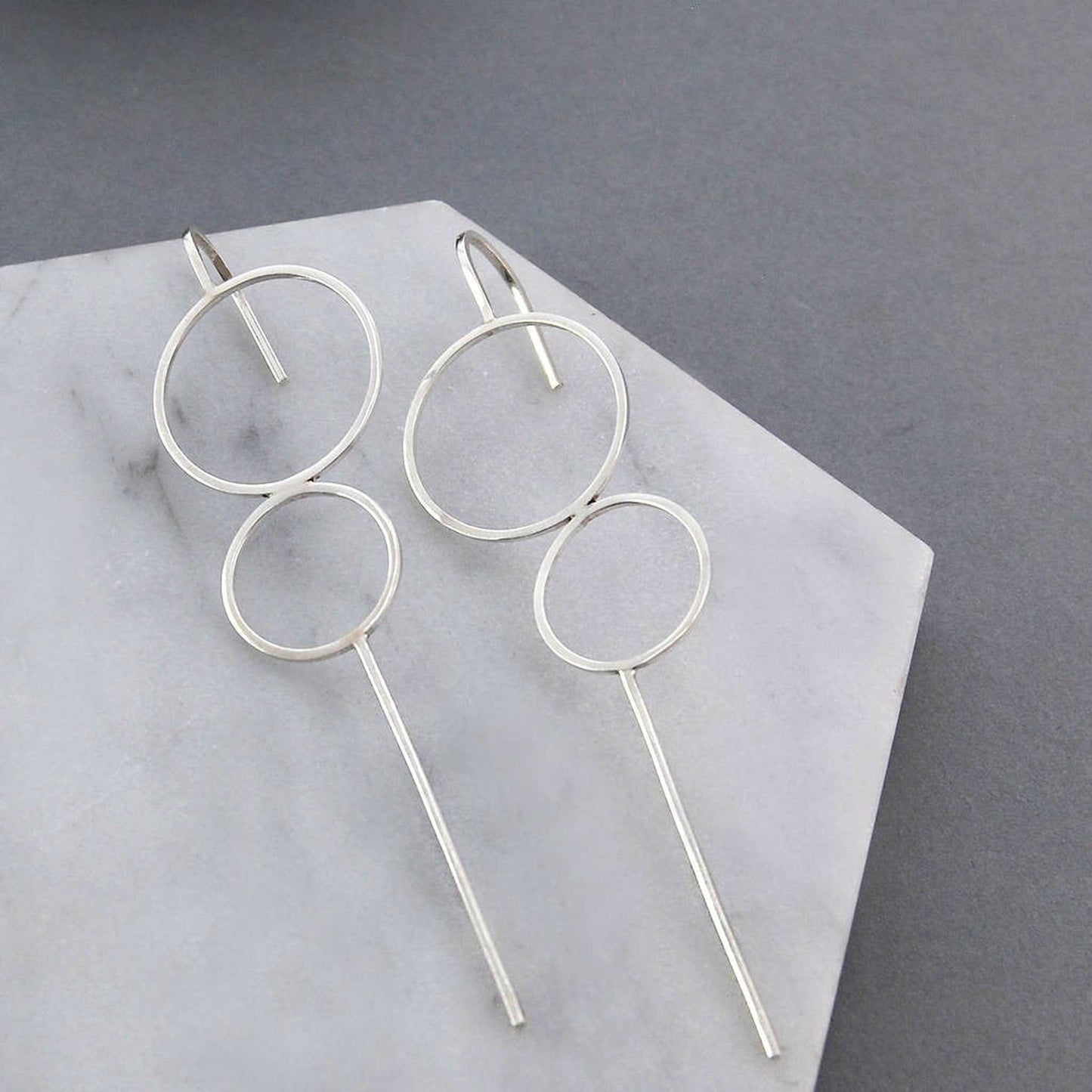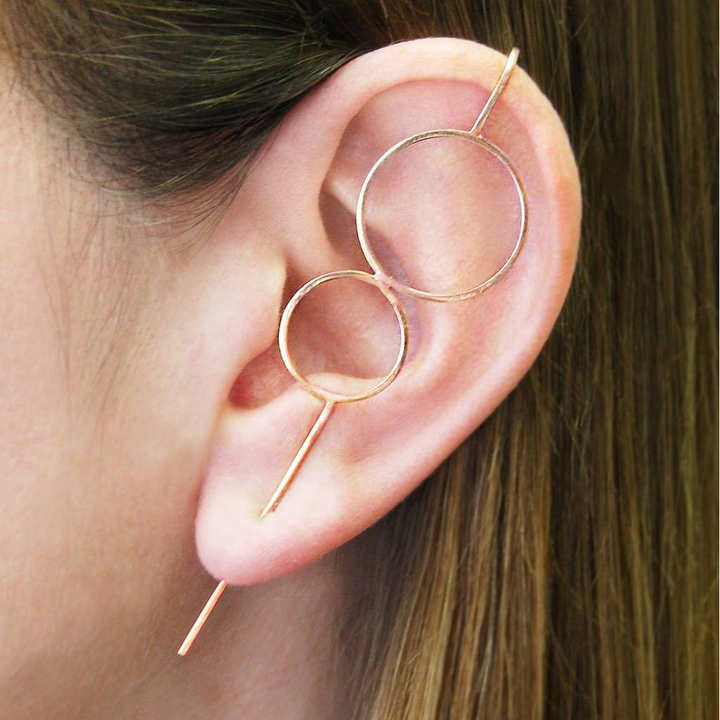 These Silver Double Circle Ear Climbers use only a single piercing to achieve this on-trend edgy look! Hand crafted from Sterling Silver, they're a great minimalist style for the fashion forward.