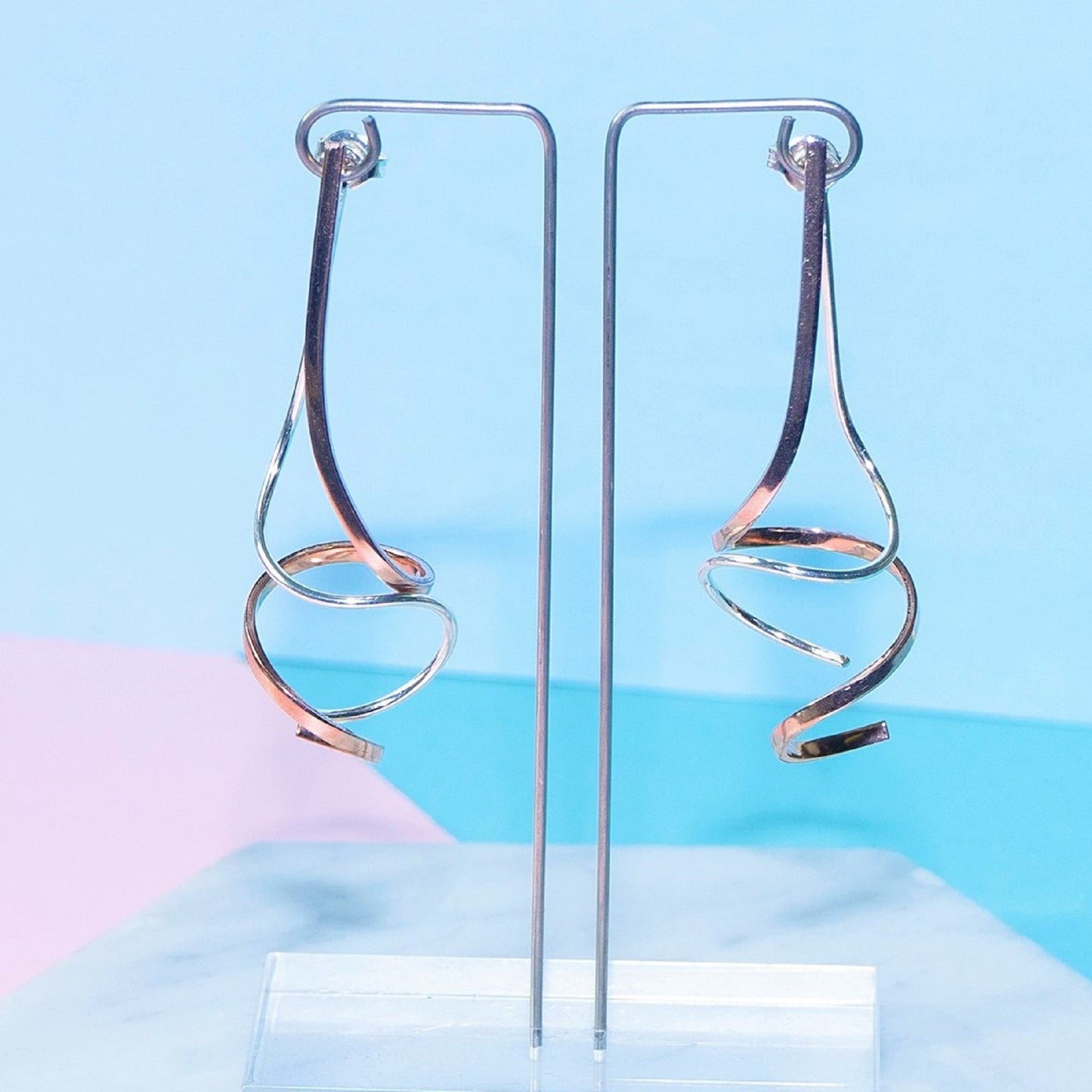 Gold Spiral Drop Dangle Ear Jackets