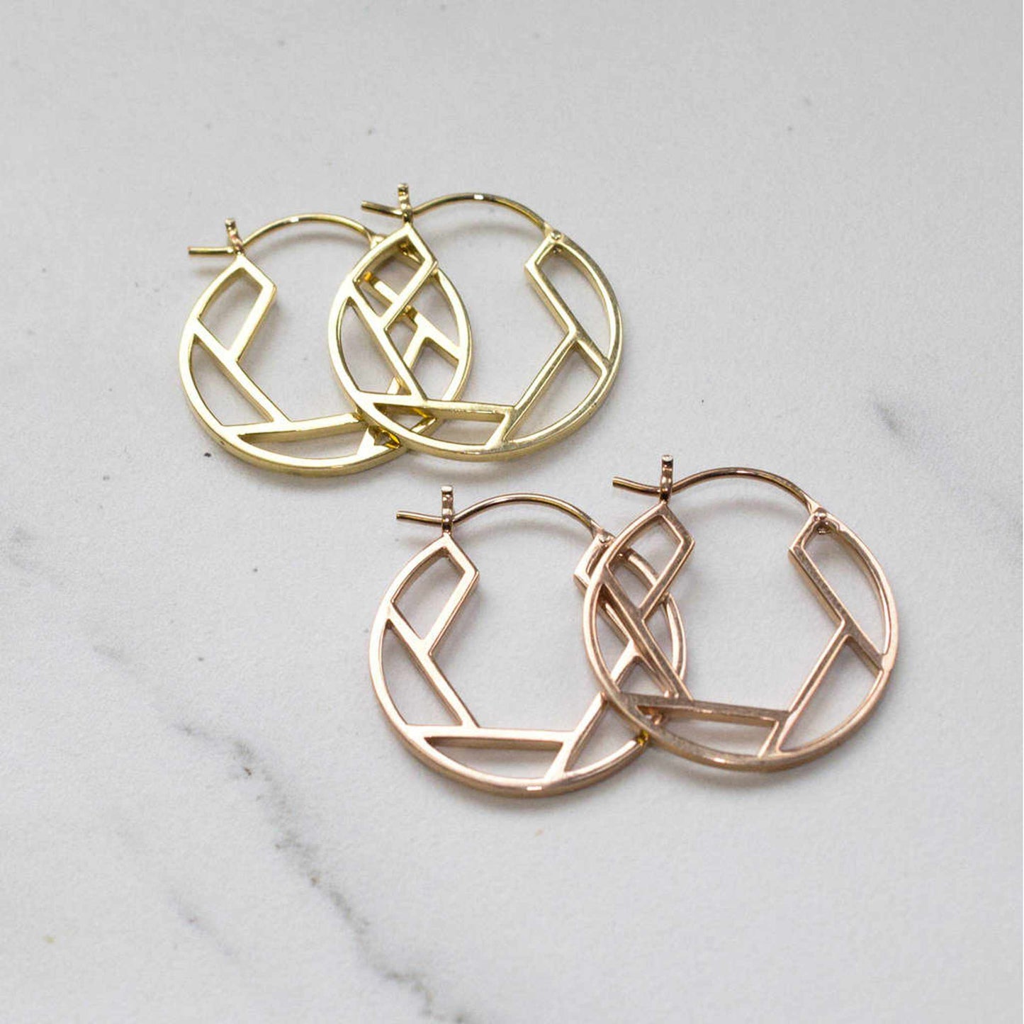 Rose Gold/Gold Geometric Round Hoop Earrings