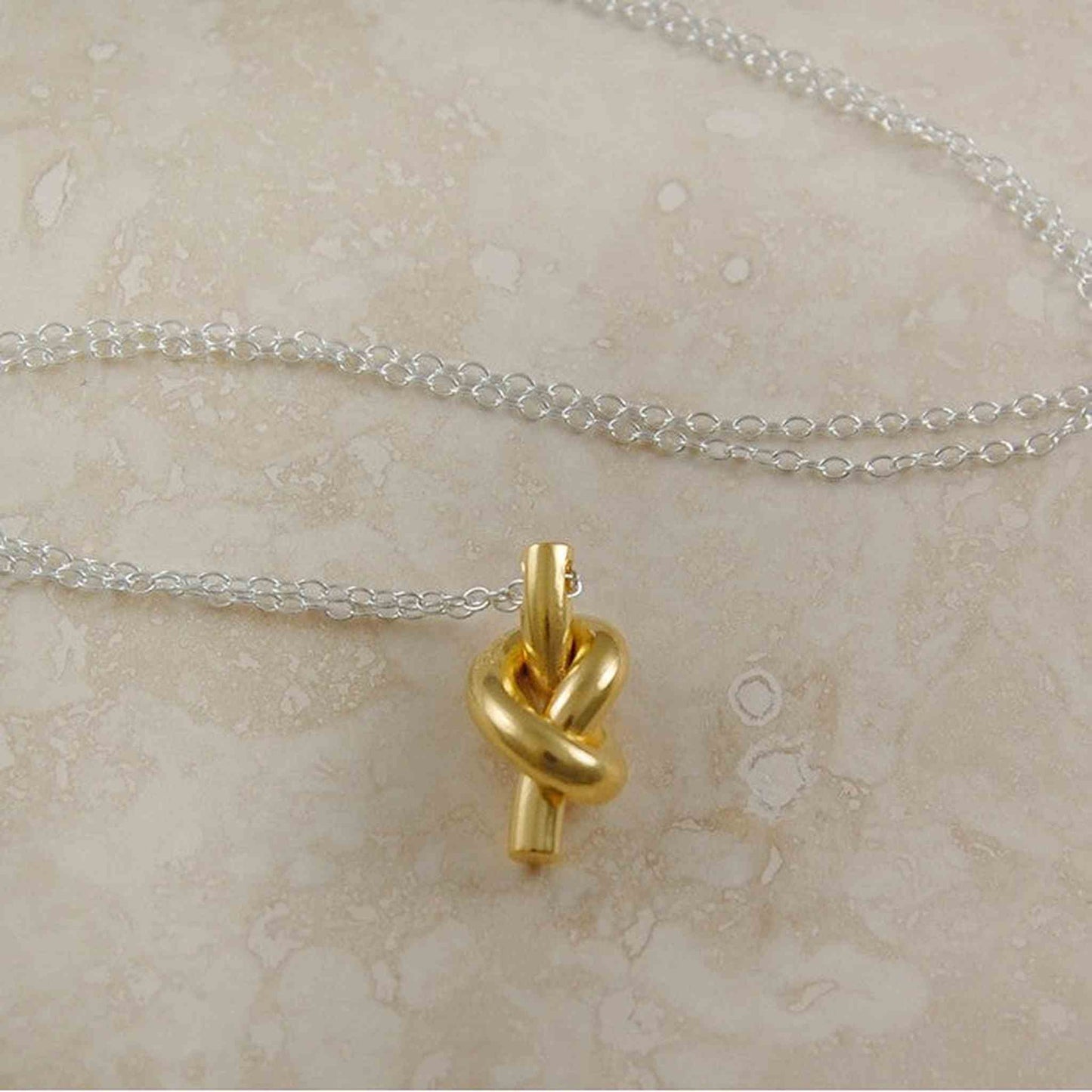 This Gold Nautical Knot Necklace features a simple hand-crafted knotted charm suspended from a Japanese 18" trace chain which has a 2" adjuster chain allowing the wearer to find the perfect fit.