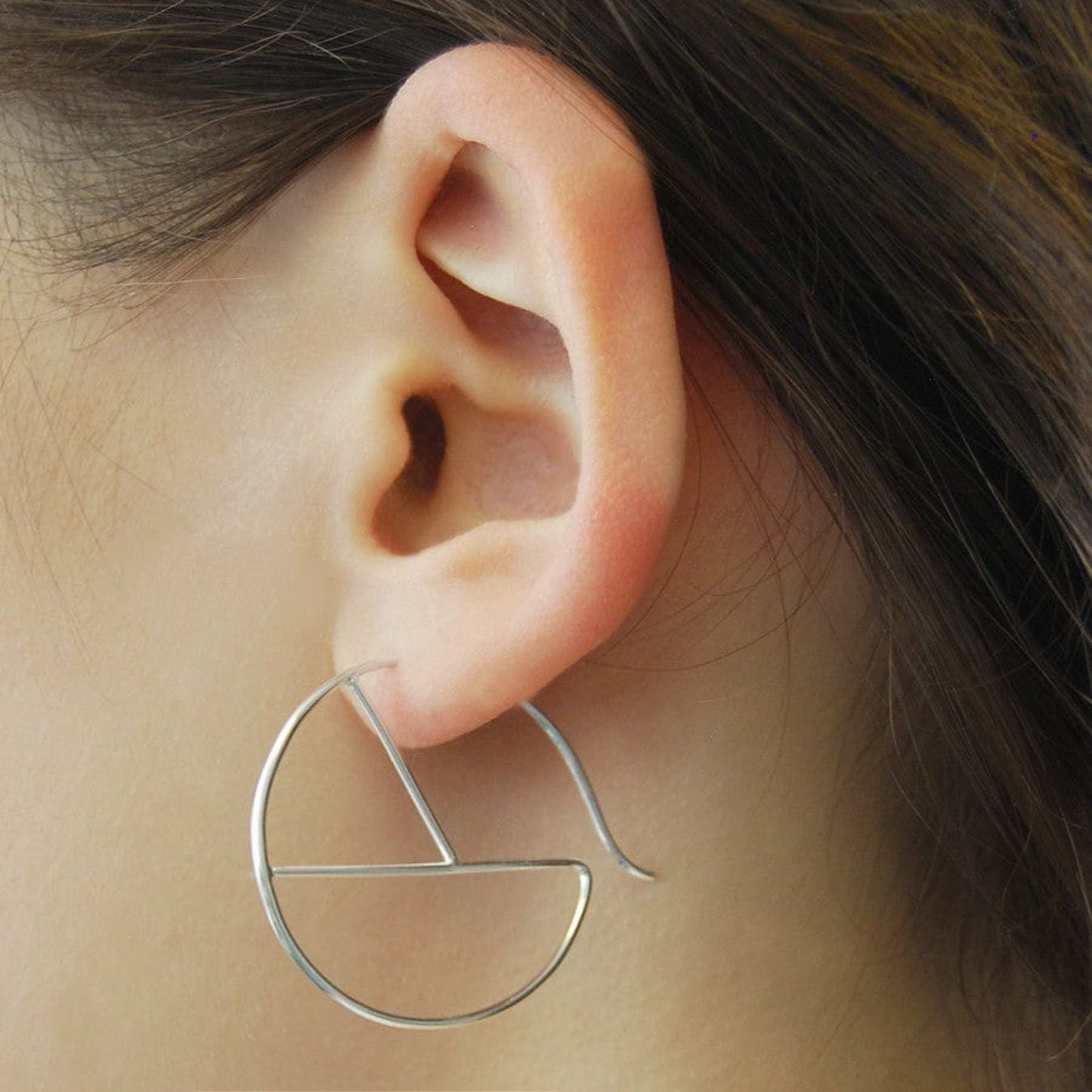 Geometric Round Wire Silver Hoop Earrings