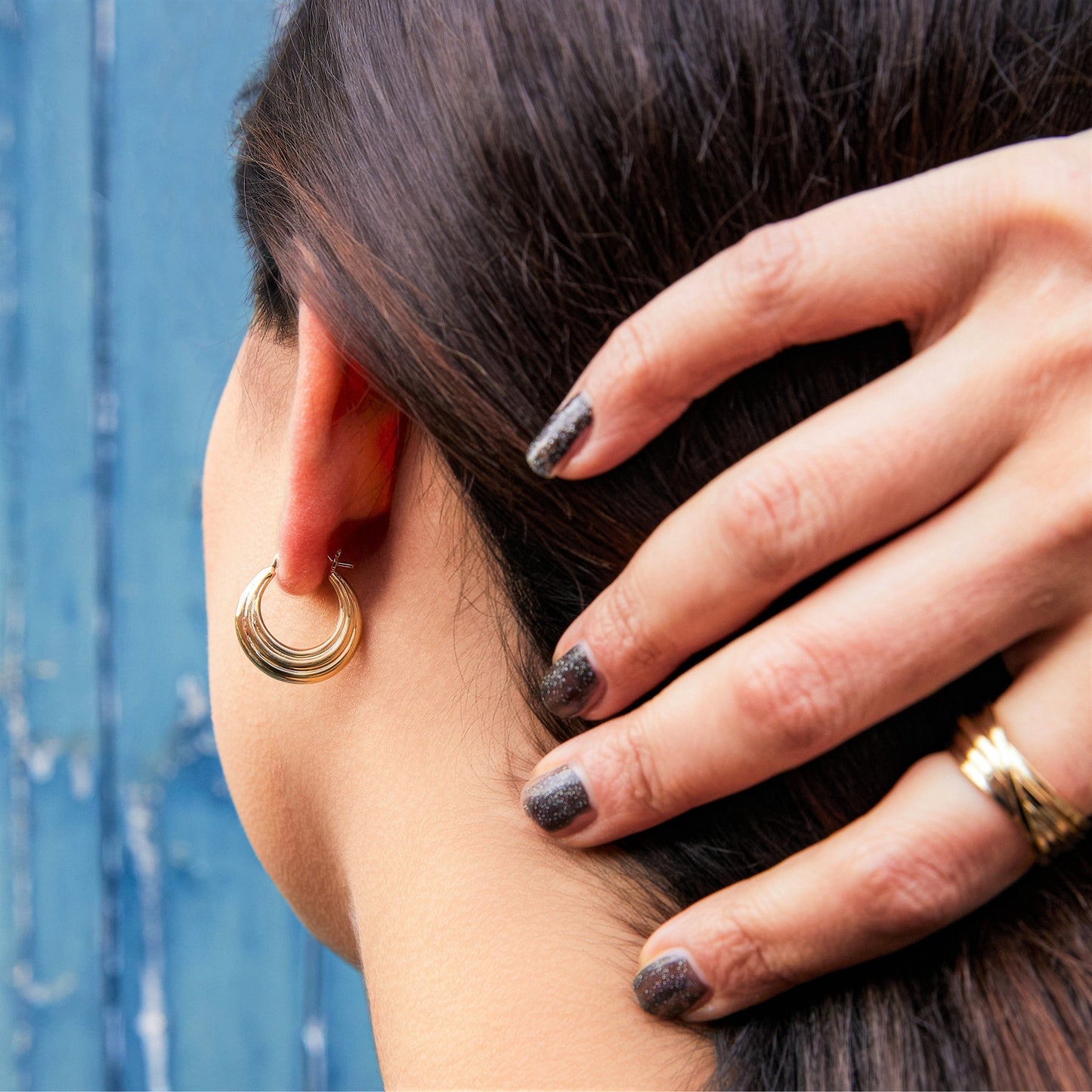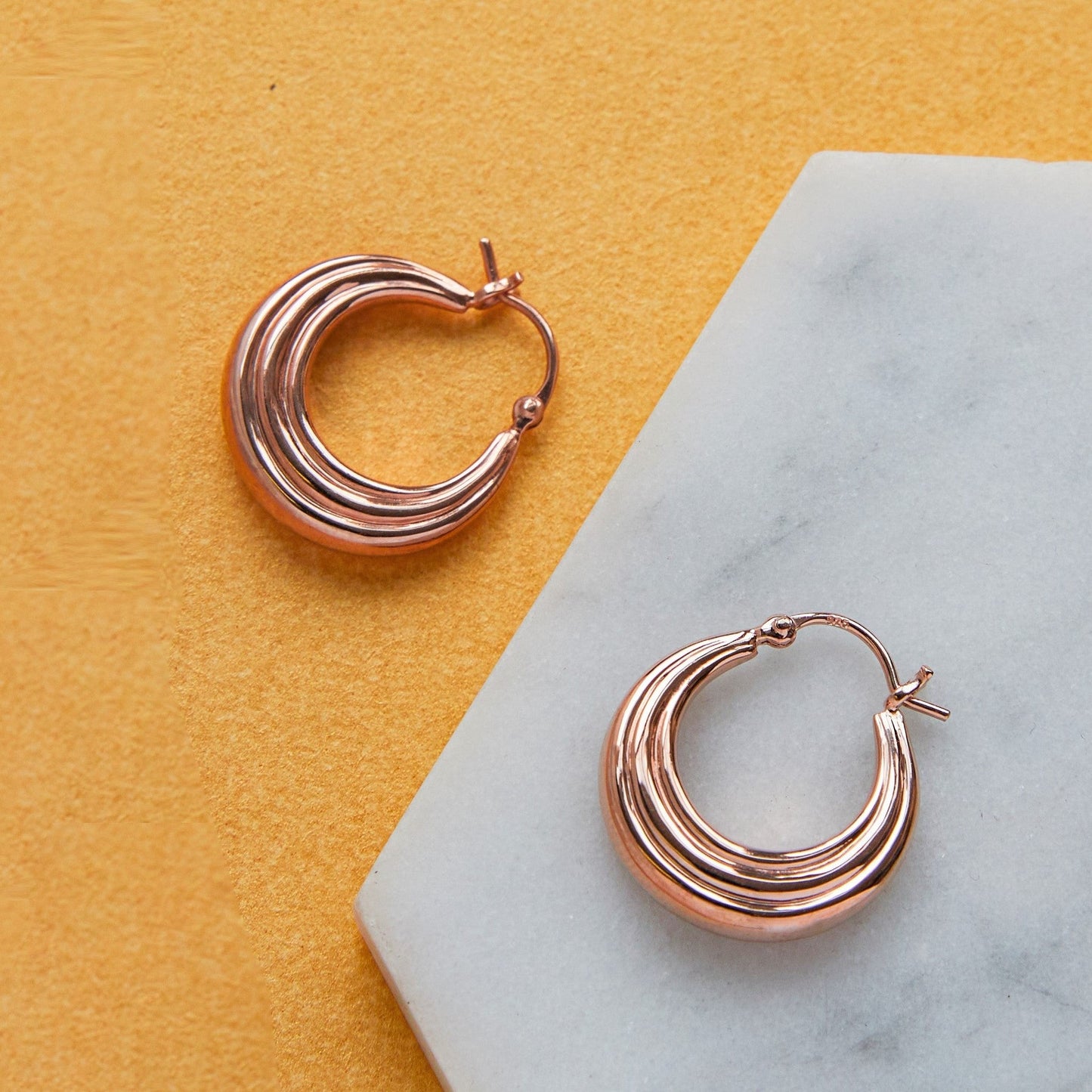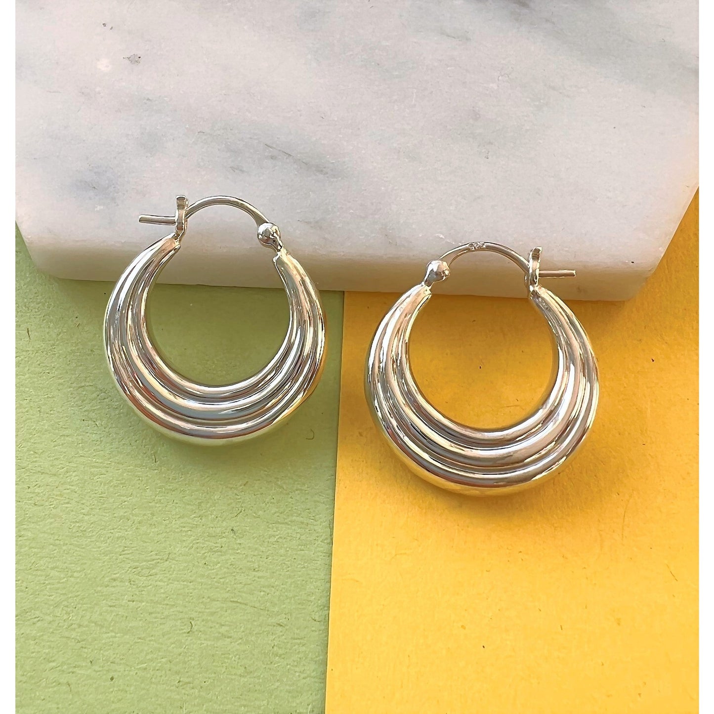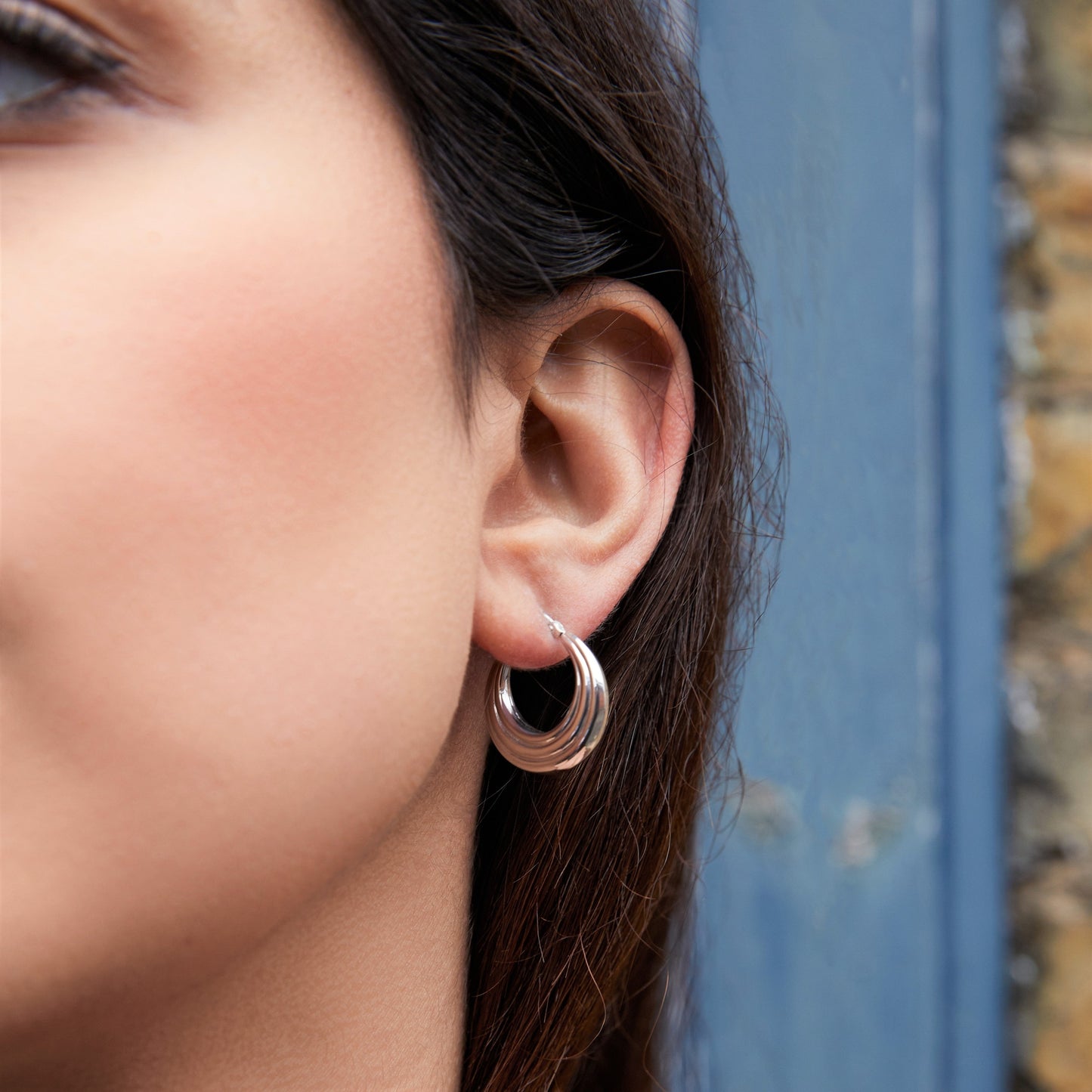 Ridged Silver Huggie Hoop Earrings