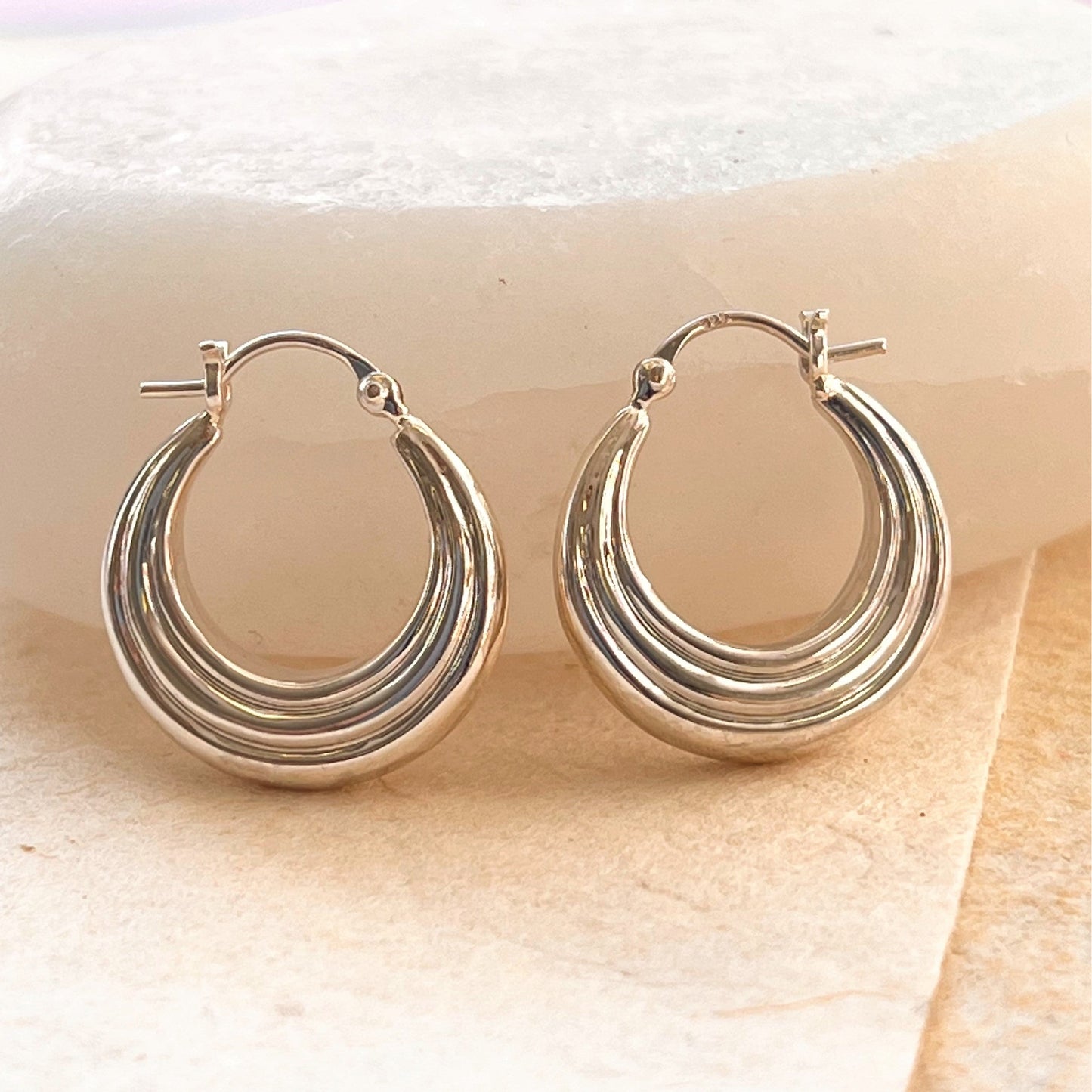 High Polish Ridged Hoop Small Sterling Silver Earring