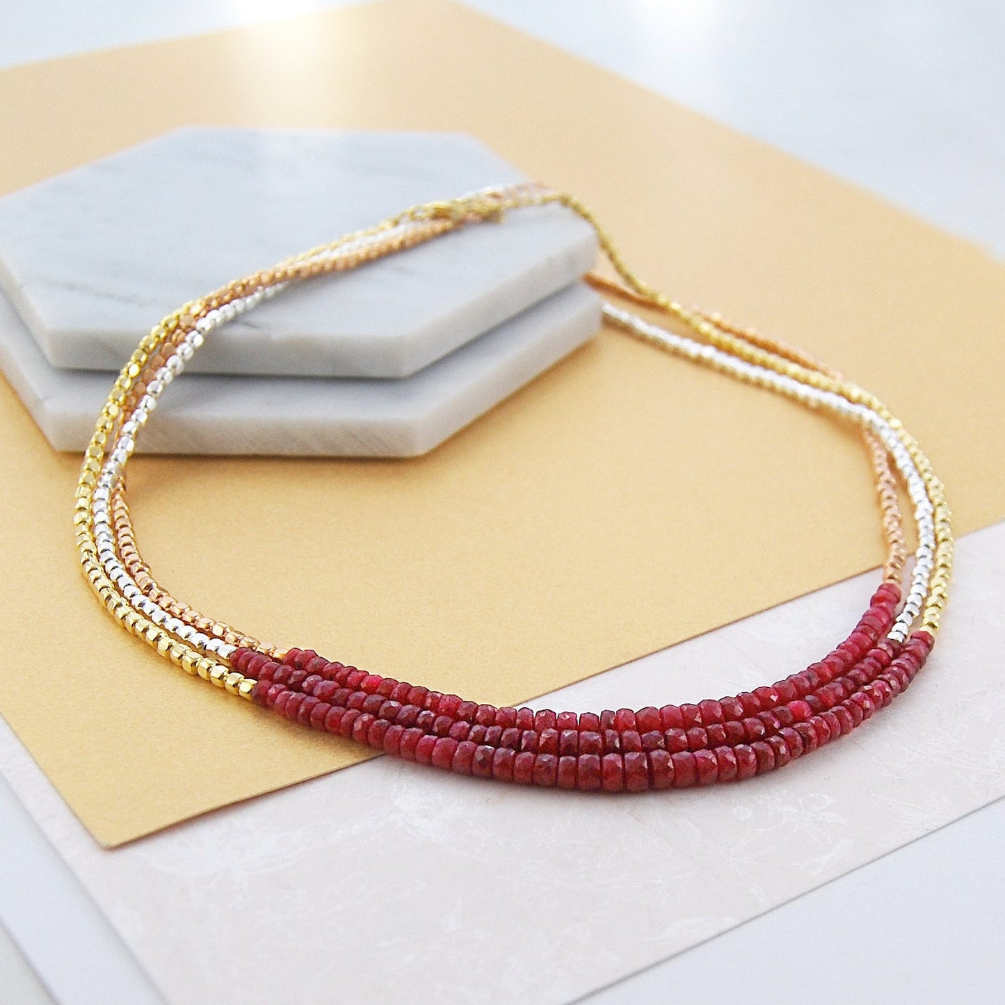 Close-up of uncut red ruby gemstones on a black background - July birthstone detail