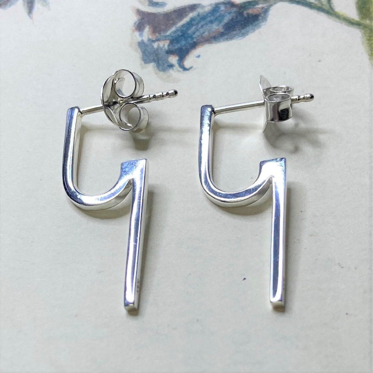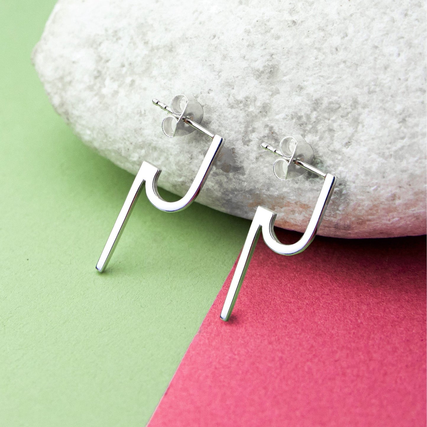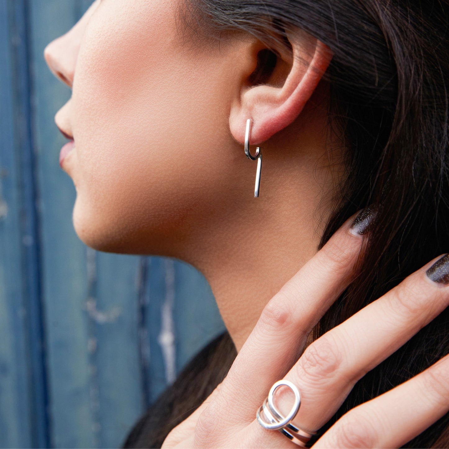 Small and perfectly formed, these Modern Minimal Drop Sterling Silver Earrings have an unusual profile that hugs the contours on one's ears, giving a clean and minimal appearance.