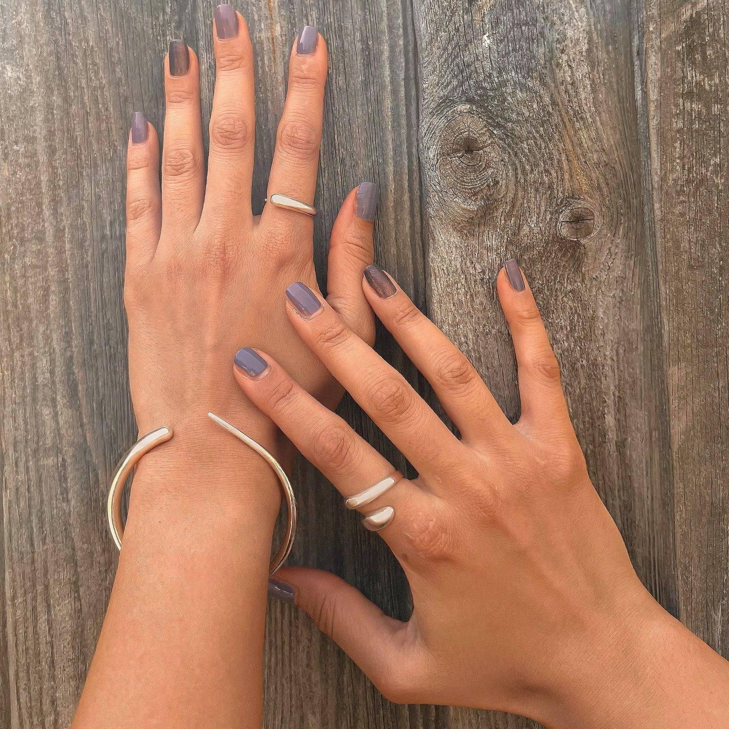 A technique layering pure silver onto a mould to create lightweight yet durable, sculptural bangles. These styles are not suitable for engraving.