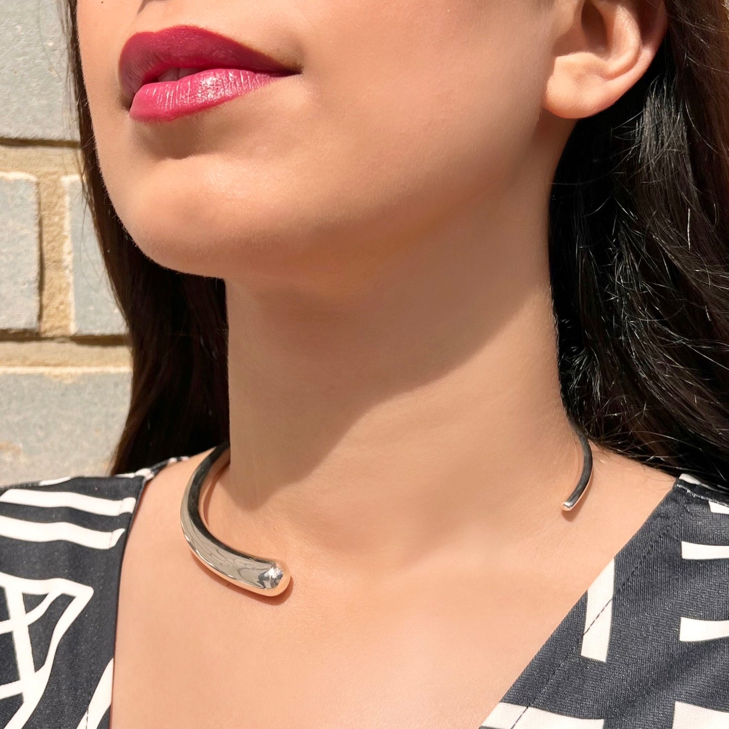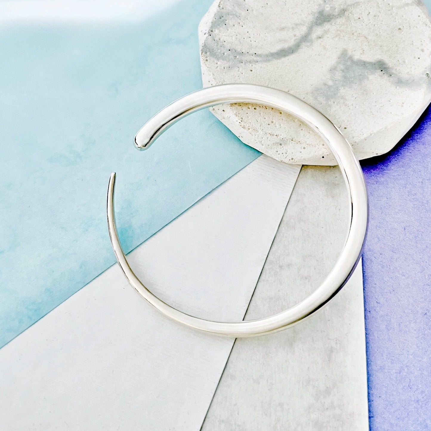 This chunky Tapered Sterling Silver Statement Bangle, with its classic design and high polished finish is the perfect statement piece for any occasion.