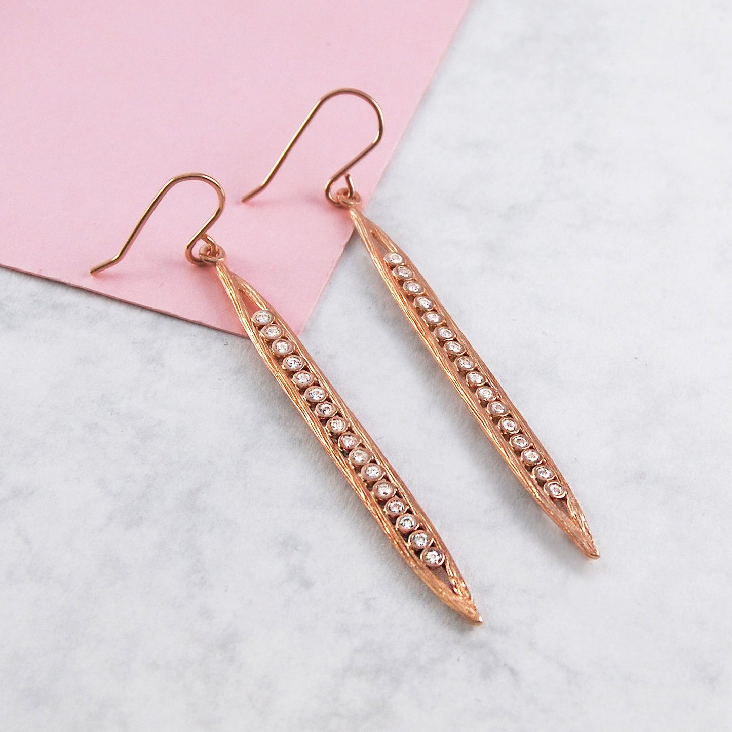 A nod to current catwalks, designer fashions and crafted from sterling silver, these are lovingly set with delicate precious white topaz stones that glint beautifully in the light.