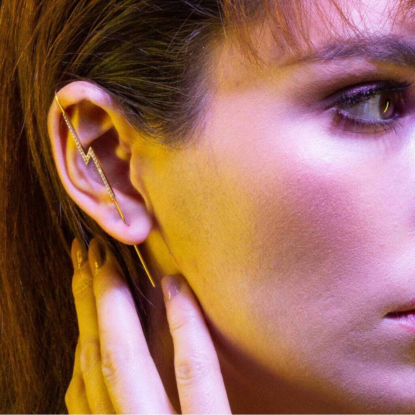 These Gold Zirconia Lightning Bolt Geometric Ear Cuffs feature hand-set zircon stones in a super-cool lightning bolt design!