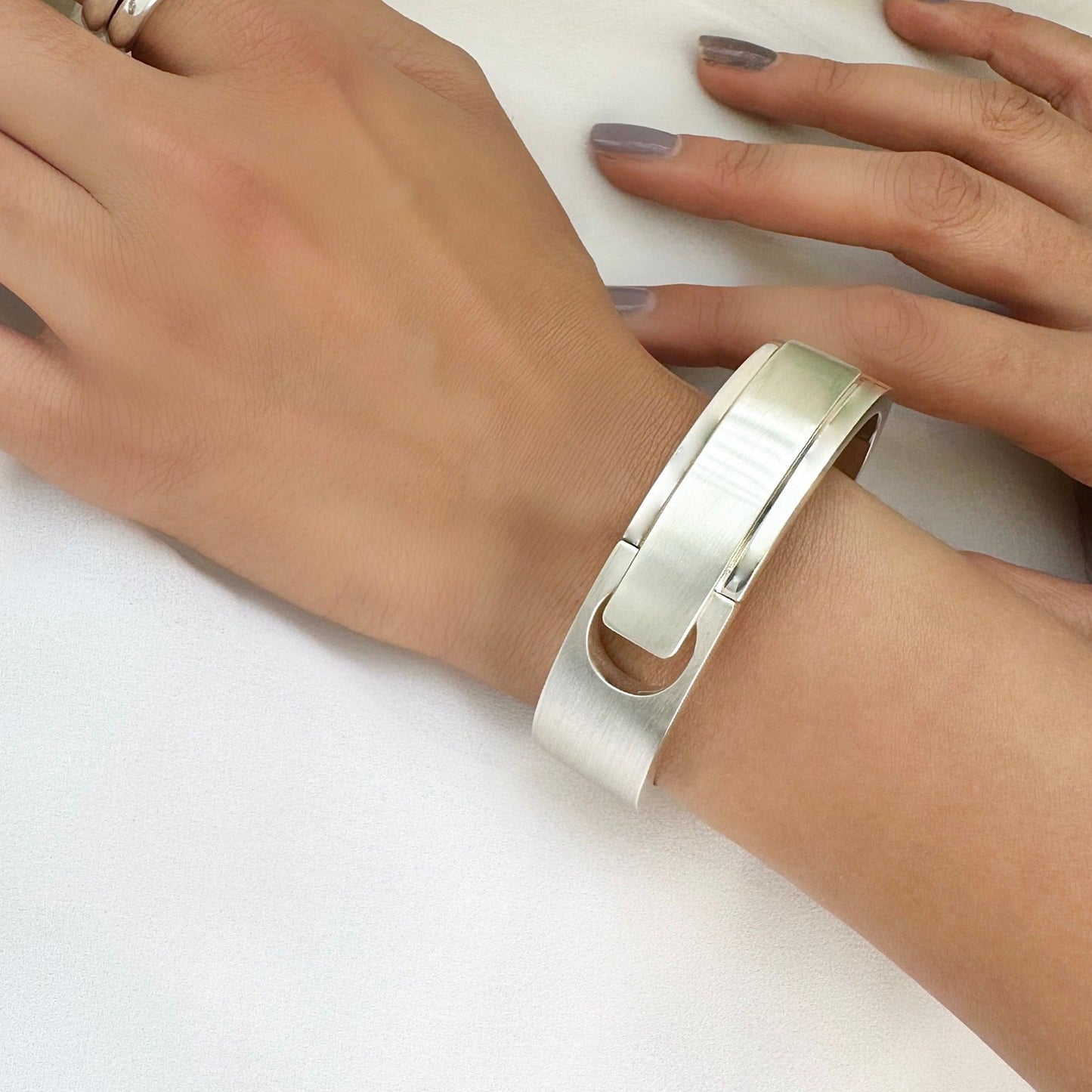 Art Deco Sterling Silver Matt Satin Hinged Bangle
