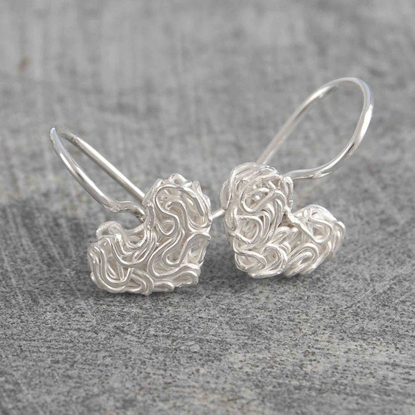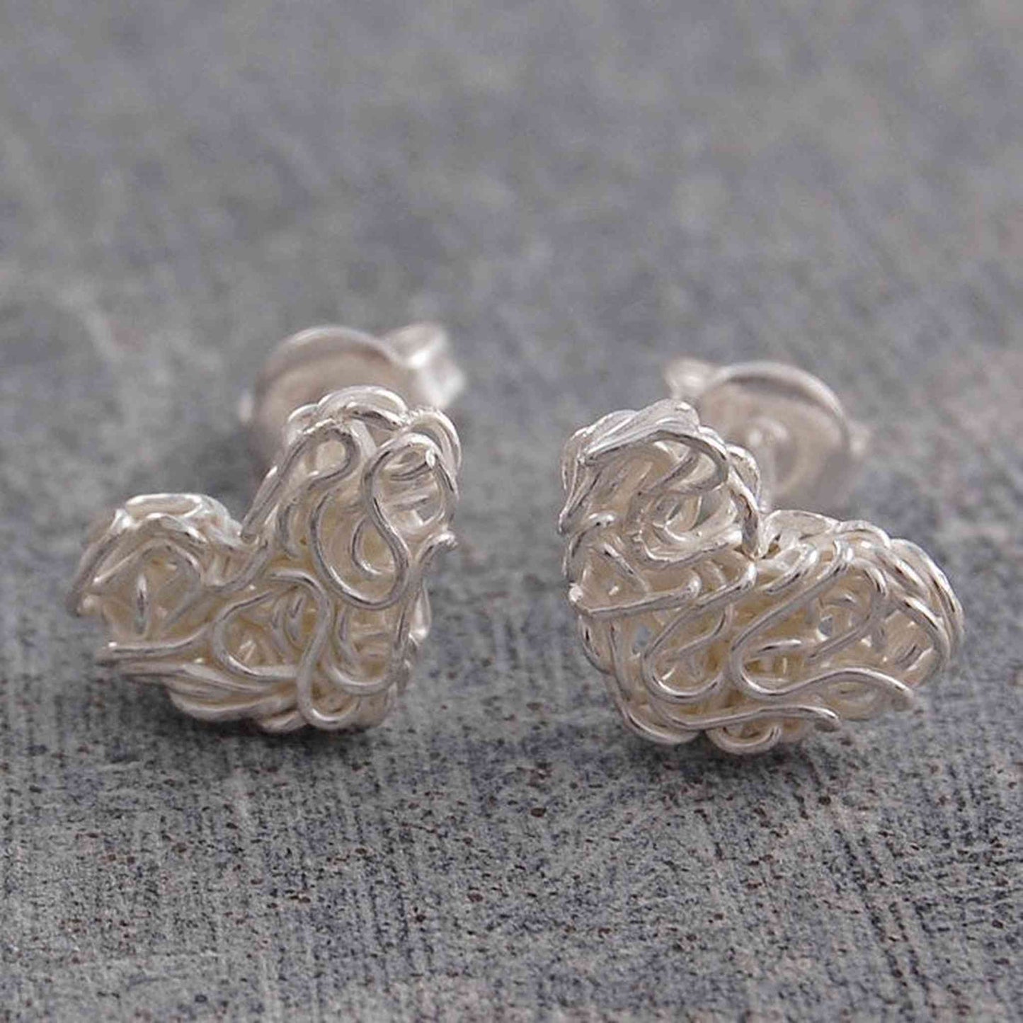 Mesh Silver Heart Stud Earrings - Otis Jaxon Silver Jewellery