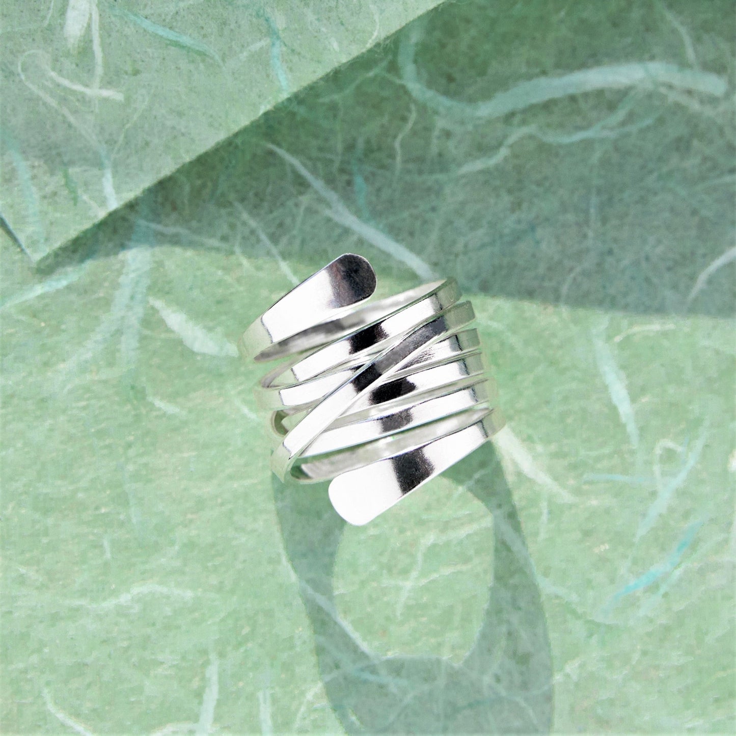 A process layering pure silver onto a mould for lightweight yet durable, sculptural rings. These pieces cannot be engraved or resized and are marked online.