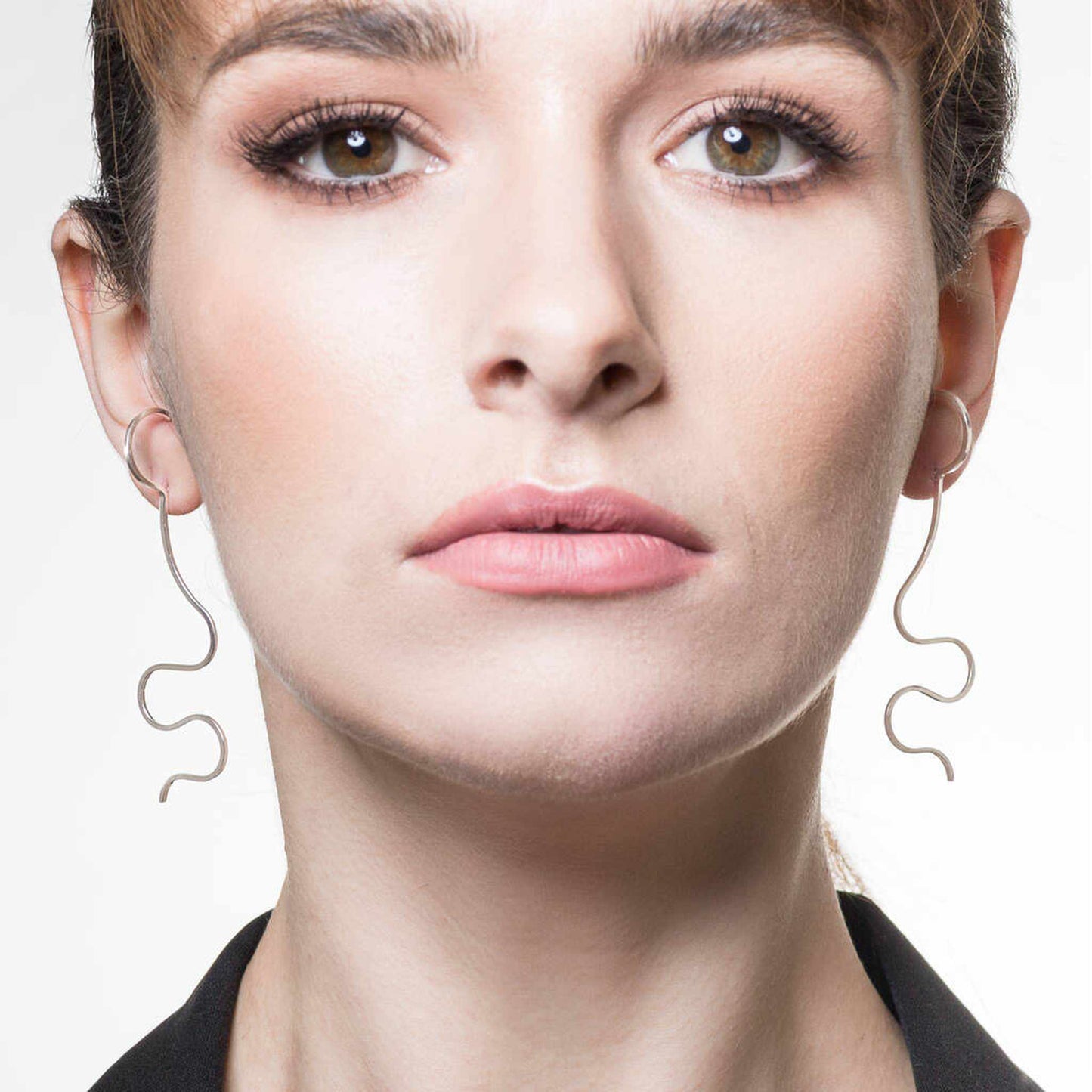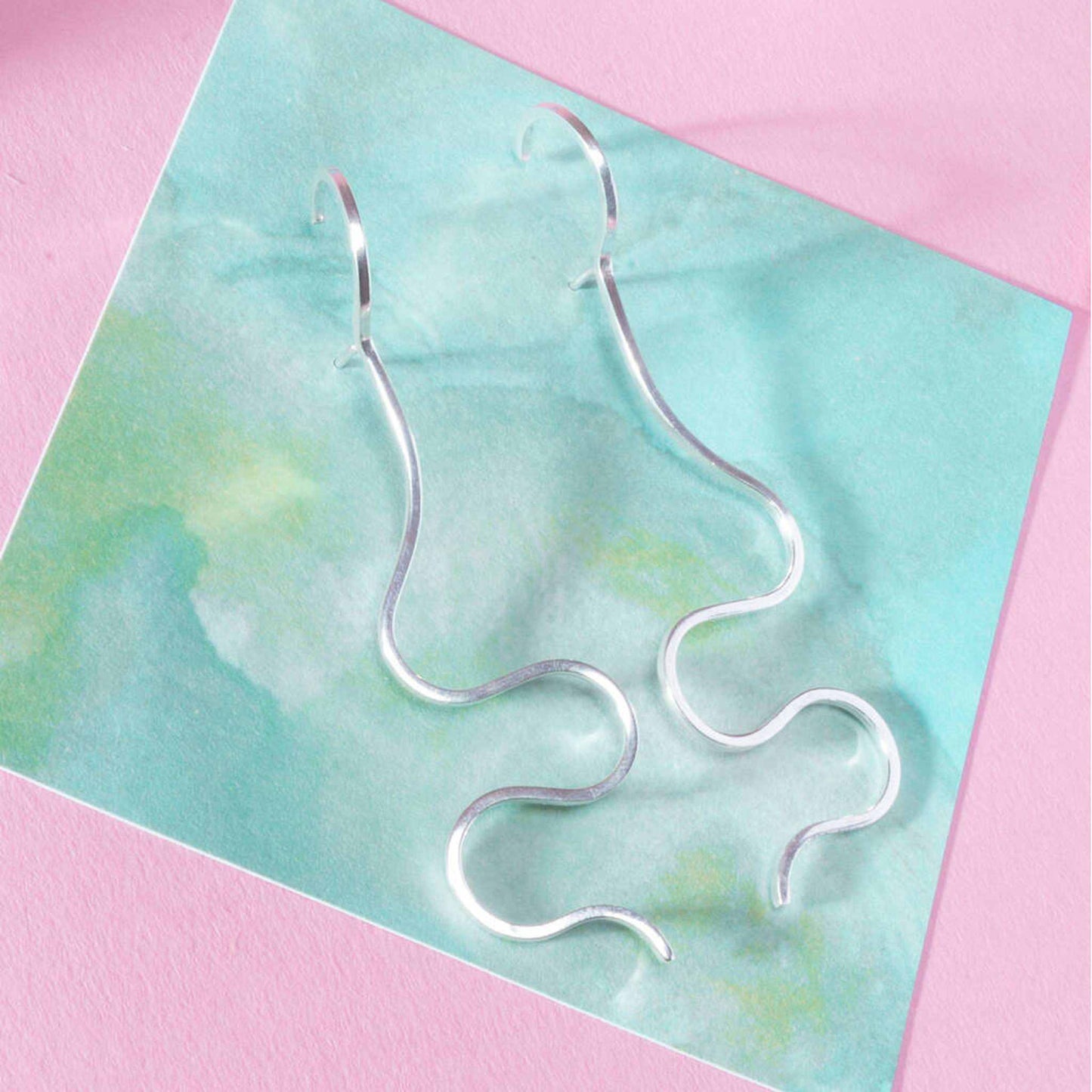 A must for fashionistas, these Wavy Abstract Sterling Silver Earrings feature a bold abstract wave motif, accented with a small hoop that cuffs above the lobe!