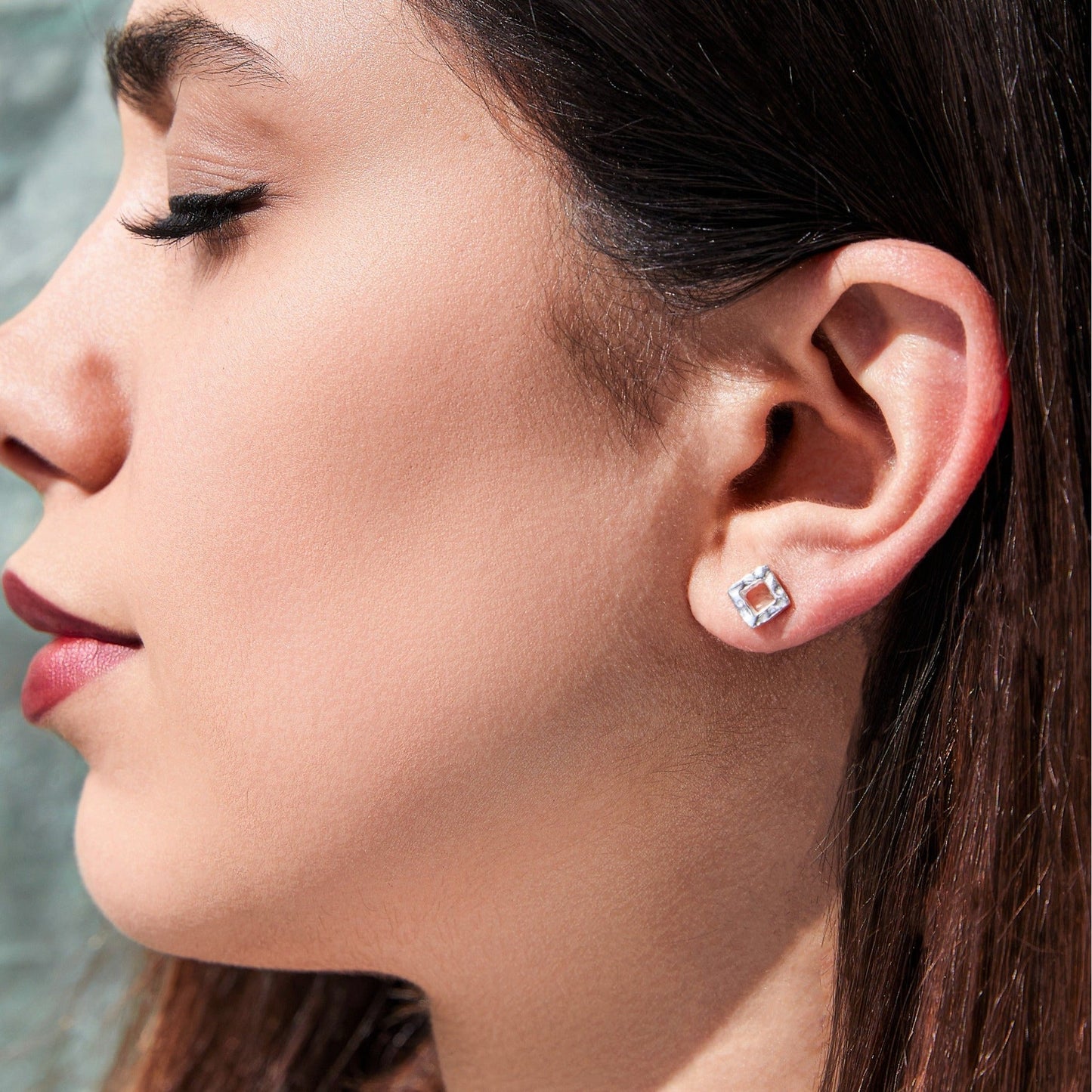 Battered Square Sterling Silver Stud Earrings