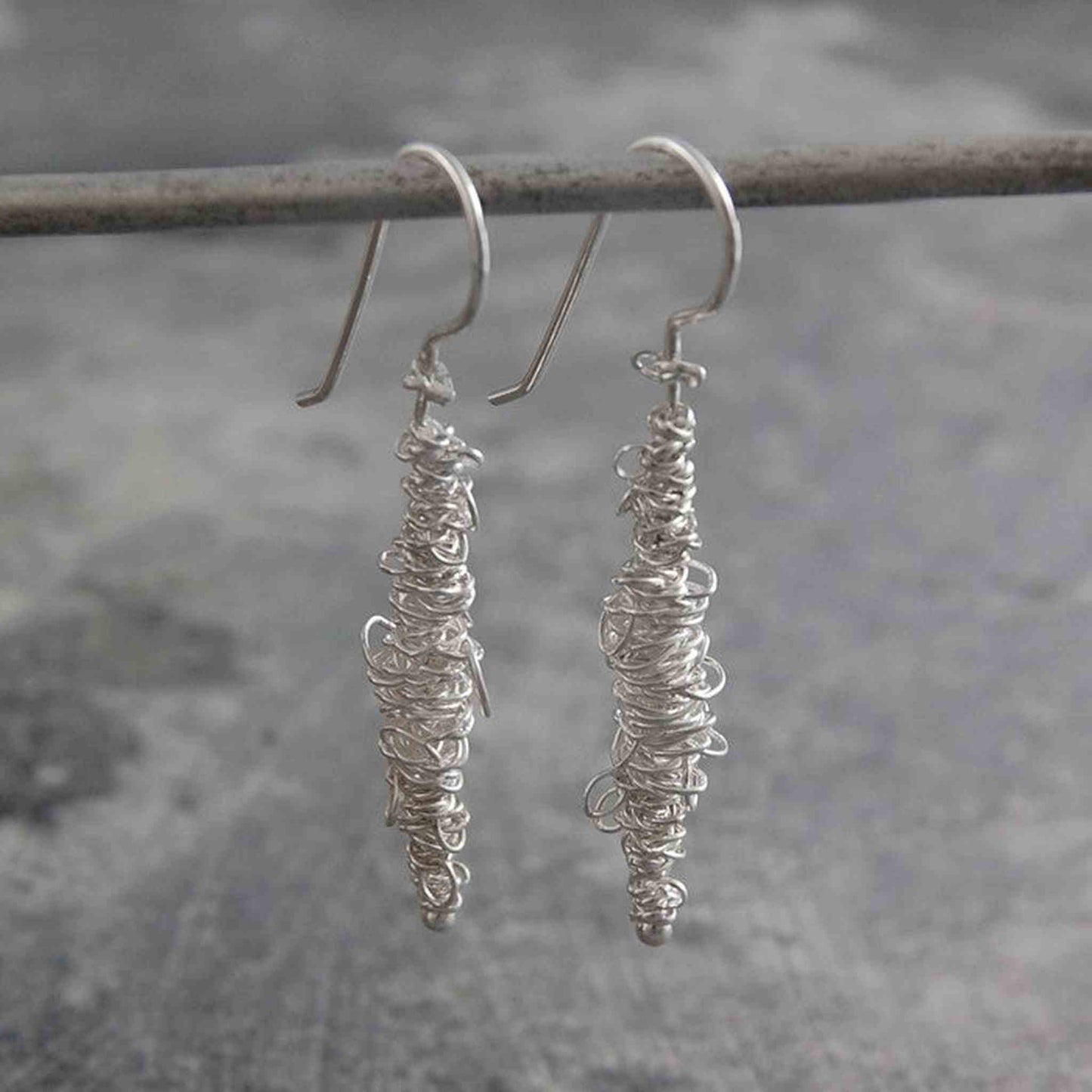 Multiple tiny silver wire ovals of different sizes are handcrafted to form these innovative and delicate Loops Sterling Silver Drop Earrings.