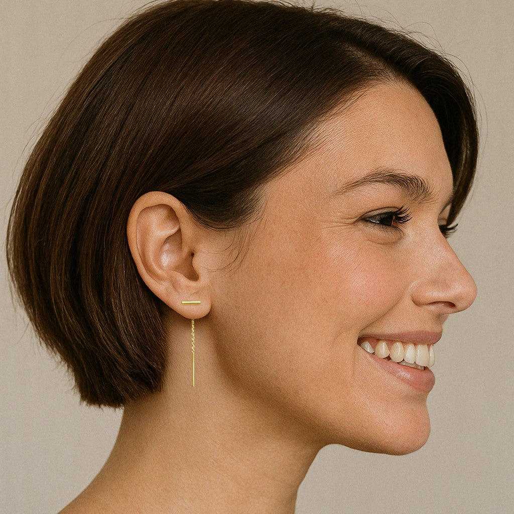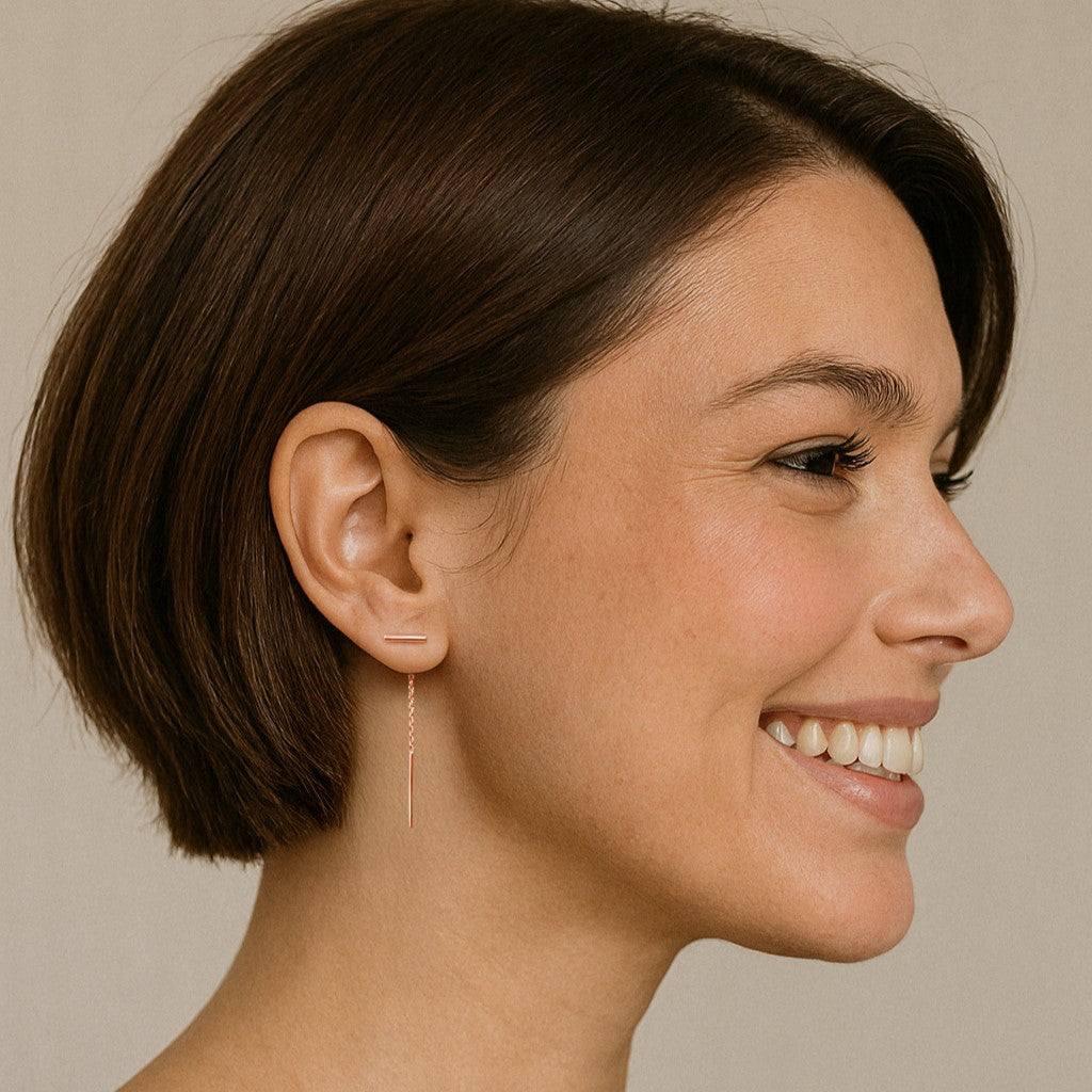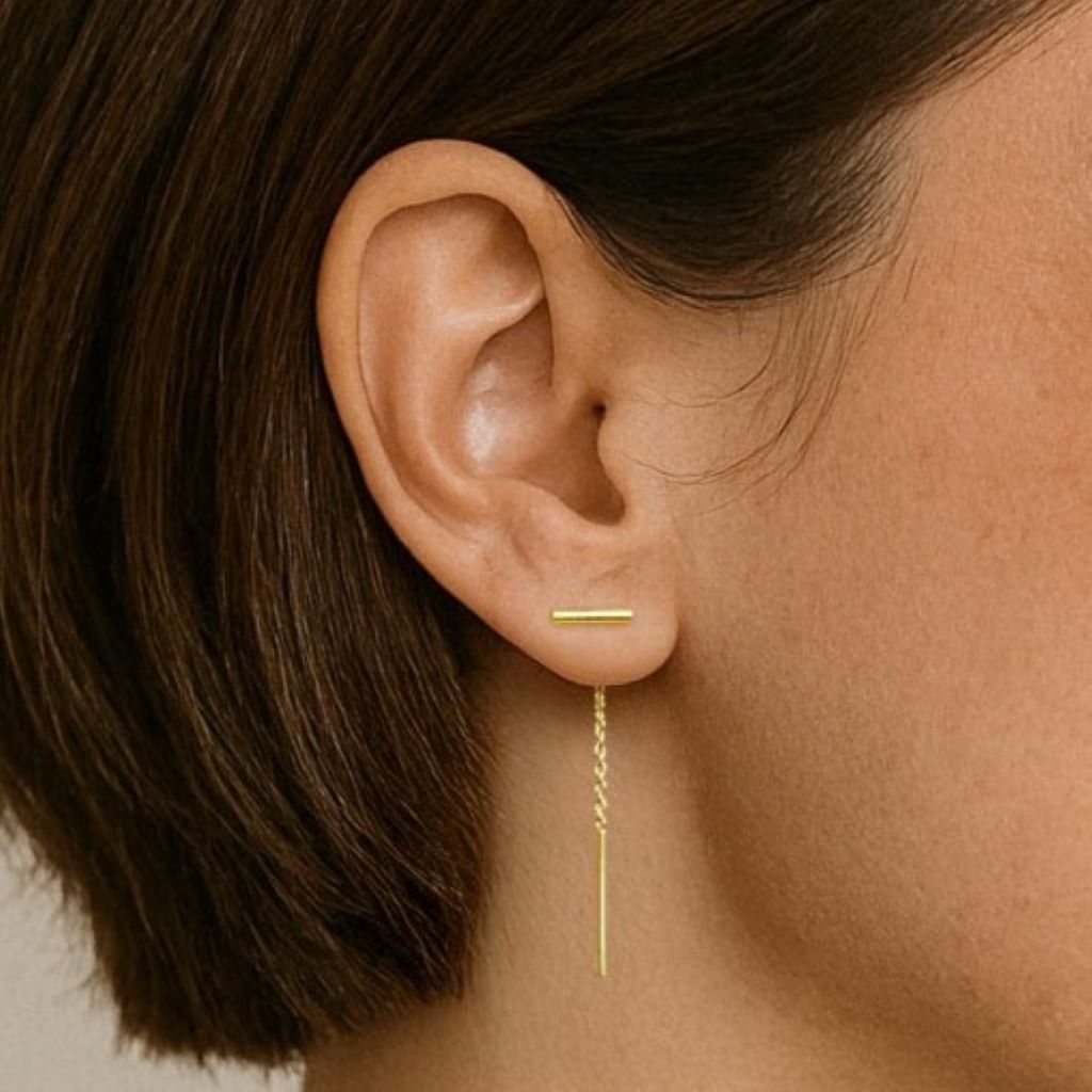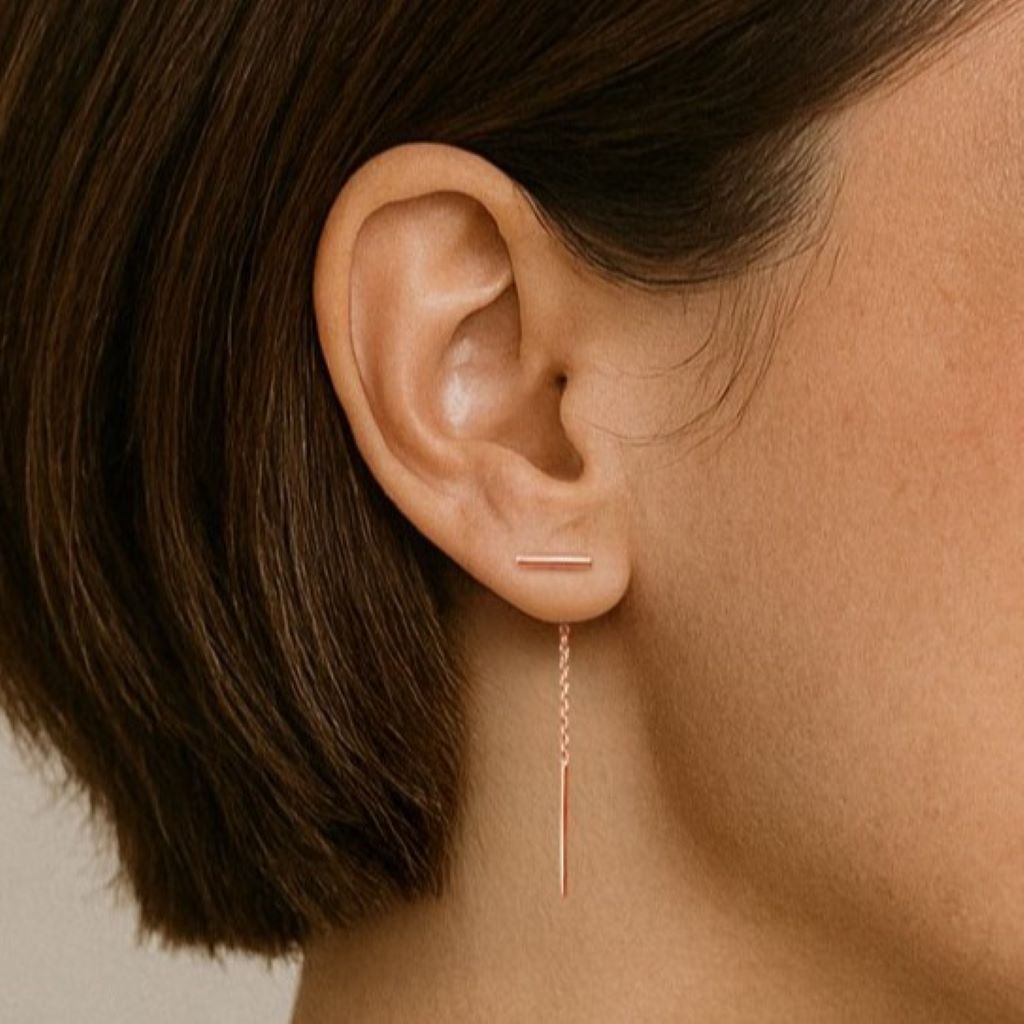 Wear Solo or Stack: Let these threaders shine on their own, or layer them with studs or hoops for a curated ear stack.