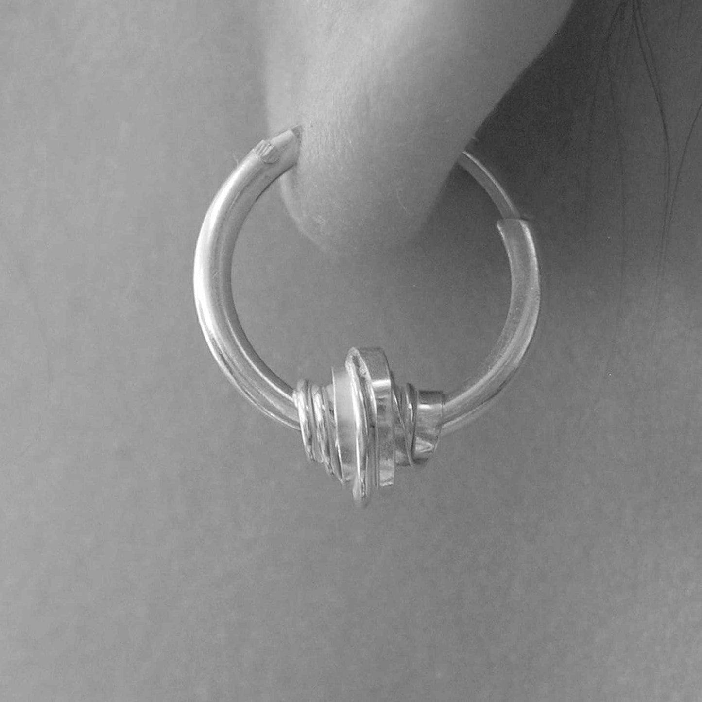 A ravishing and uncomplicated design featuring a coil of sterling silver wire of differing thicknesses and textures, artfully wound and fashioned. These Coiled Sterling Silver Huggie Hoop Earrings are distinguished yet casual enough to be universally wearable.