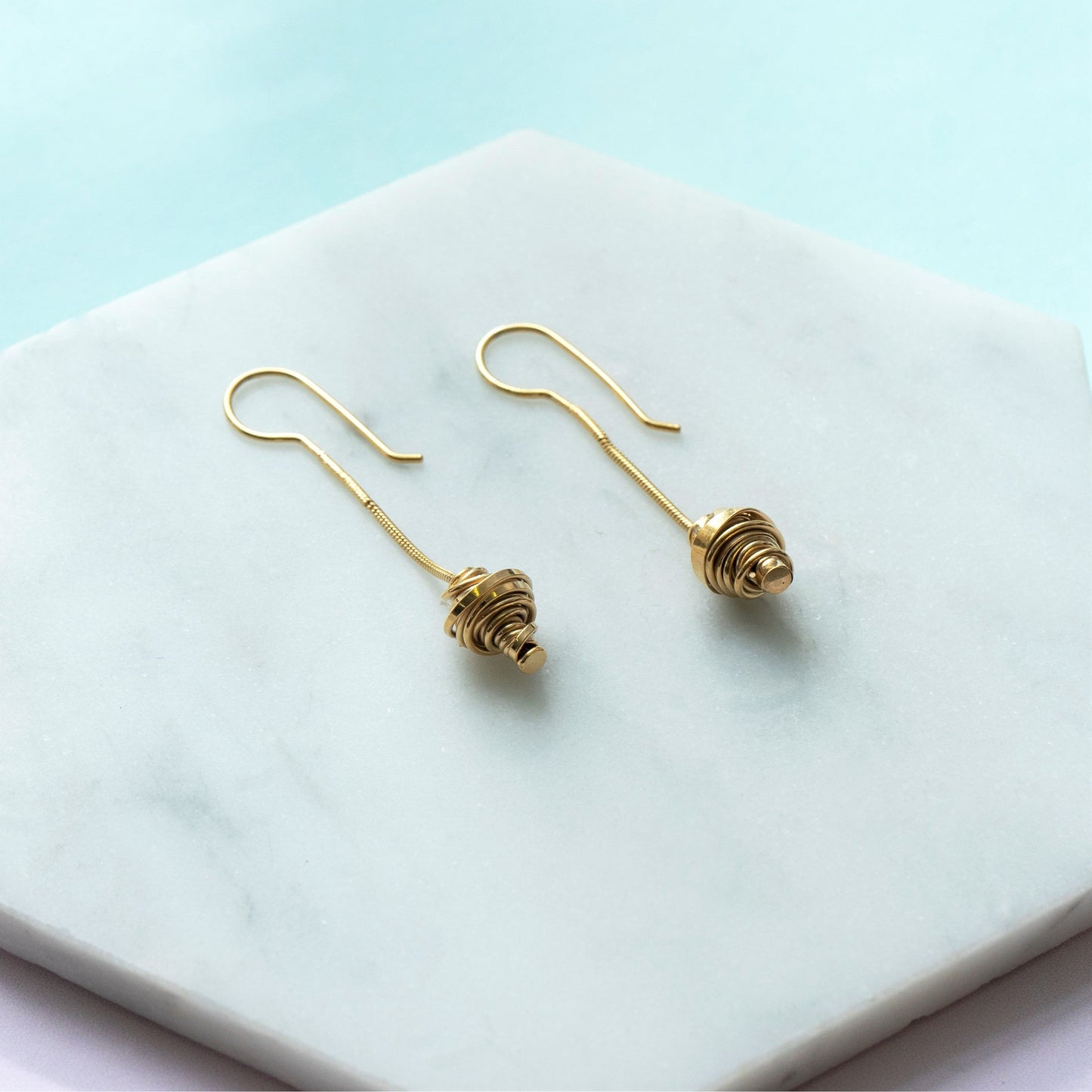 Coiled Charm Gold Plated Silver Long Drop Earrings