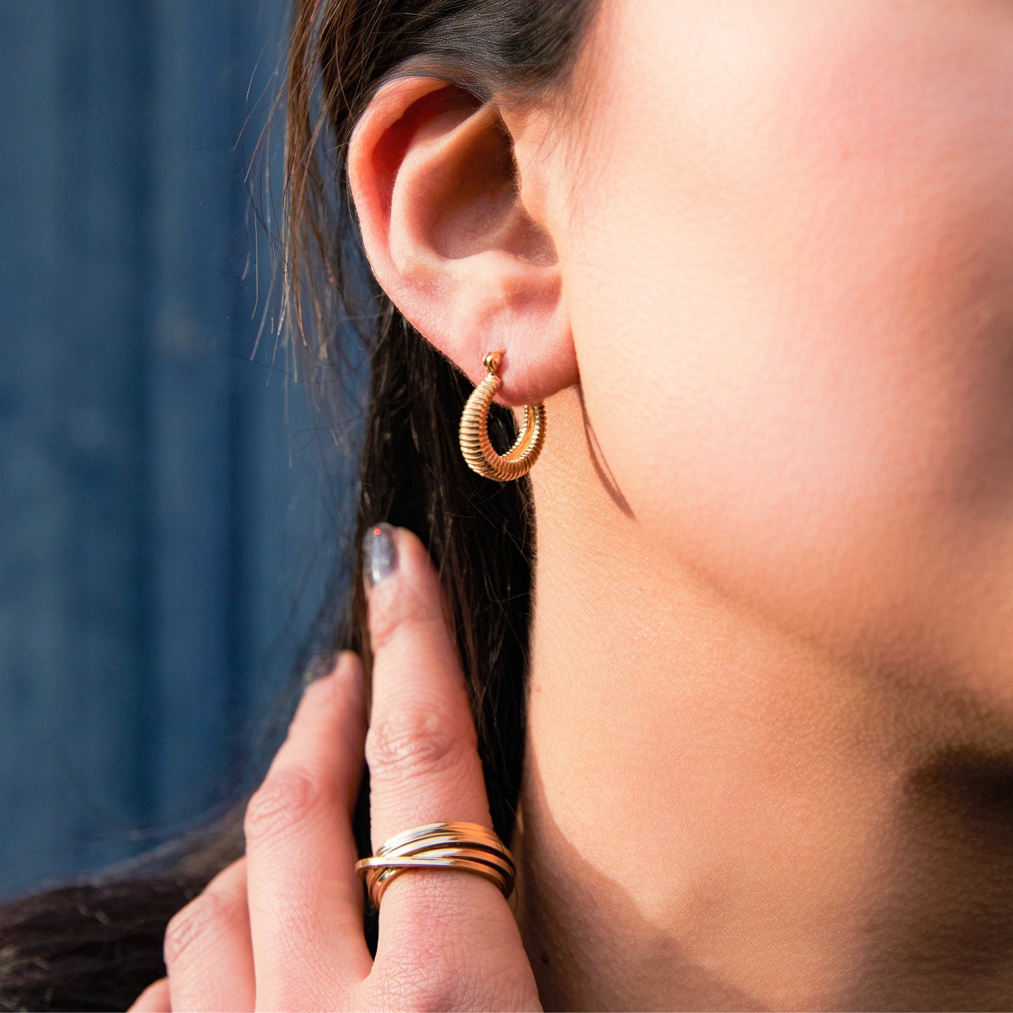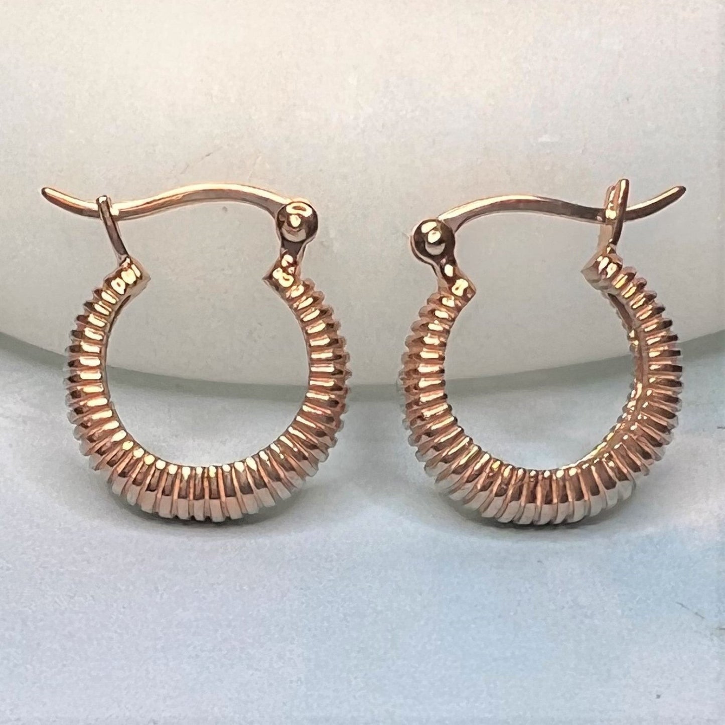 Small Ribbed Huggie Hoop Gold Earrings