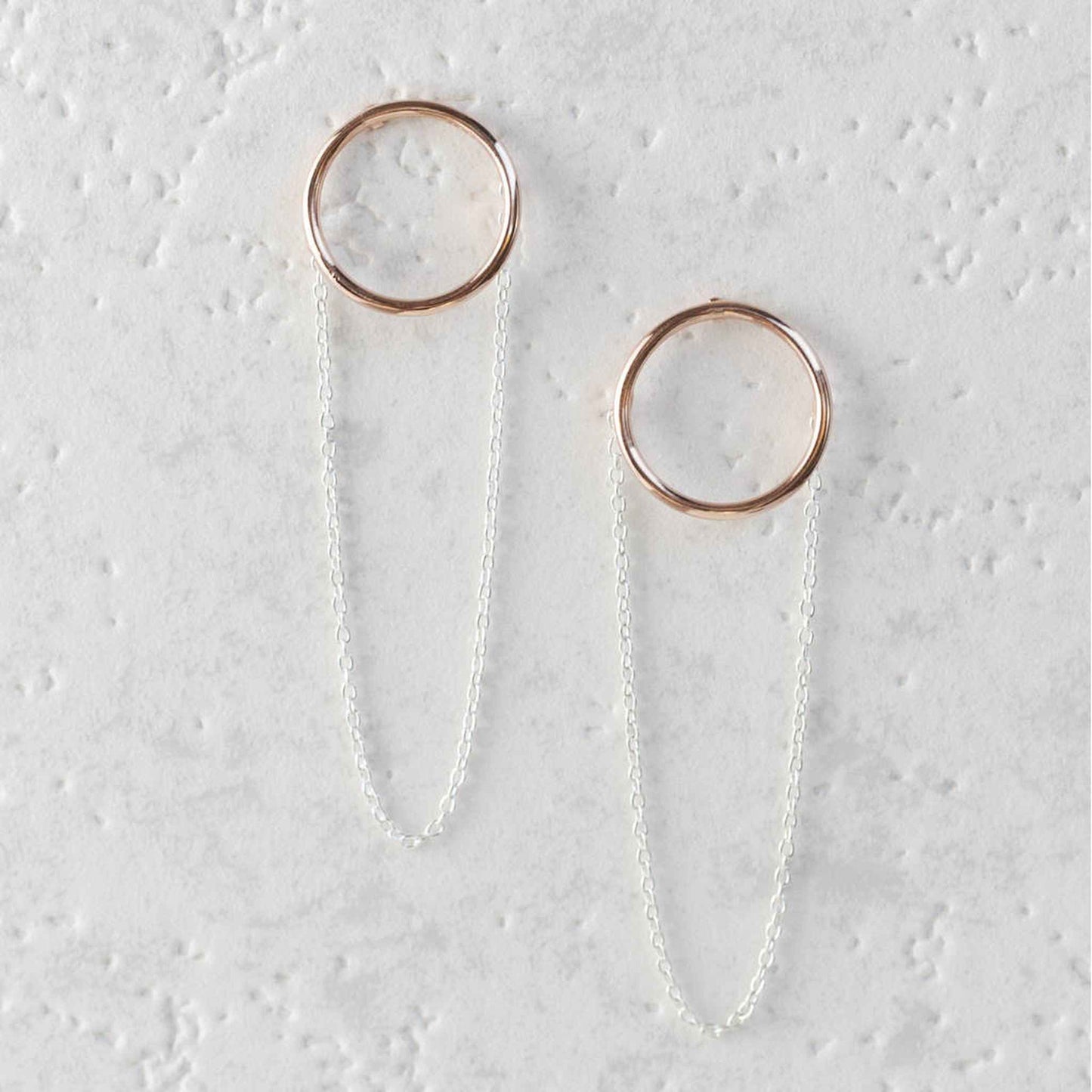 Silver and 18k Rose Gold Plated Circle Chain Earrings