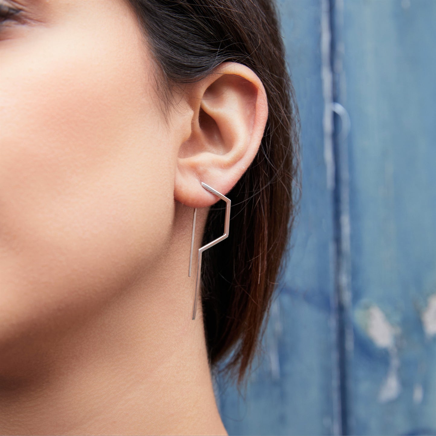 Perfectly weighted and cast from sterling silver, these stylish drop earrings have a modern silhouette, and are beautifully made so will not bend or break even with repeat daily wear, a distinctive style that you'll fall in love with at first sight.