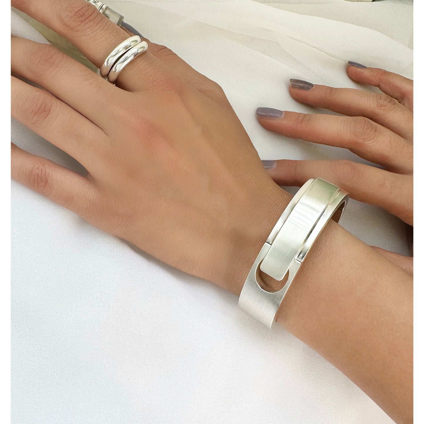 Heavy Art Deco Sterling Silver Bangle Bracelet- Otis Jaxon Silver Jewellery
