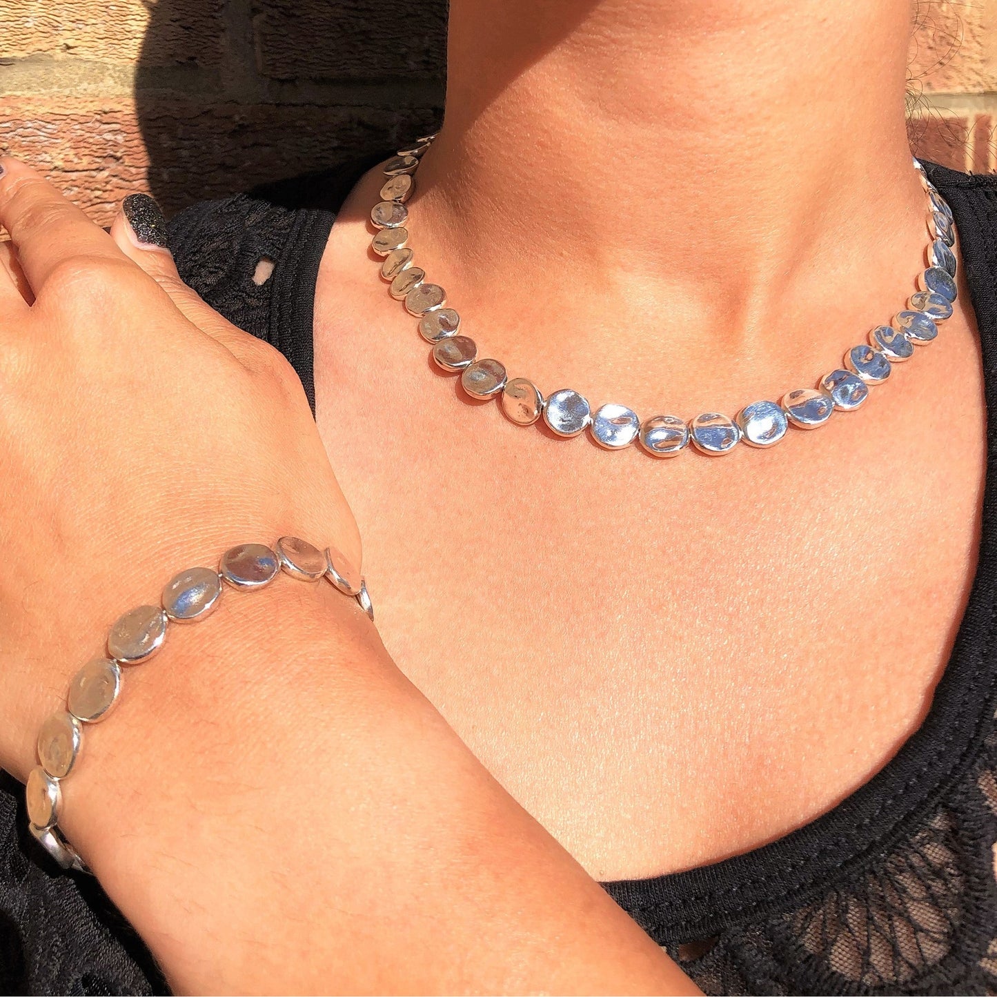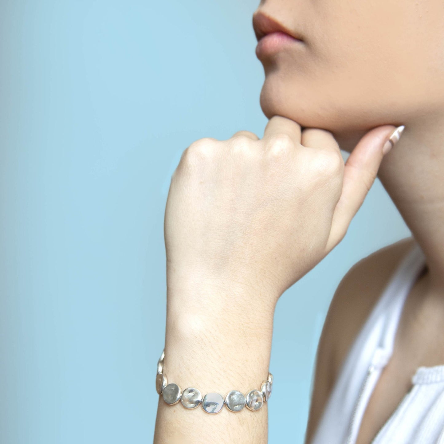 If you would like this Organic Round Chunky Silver Bracelet in a gold or rose gold finish, please call us and we will offer this bespoke service.