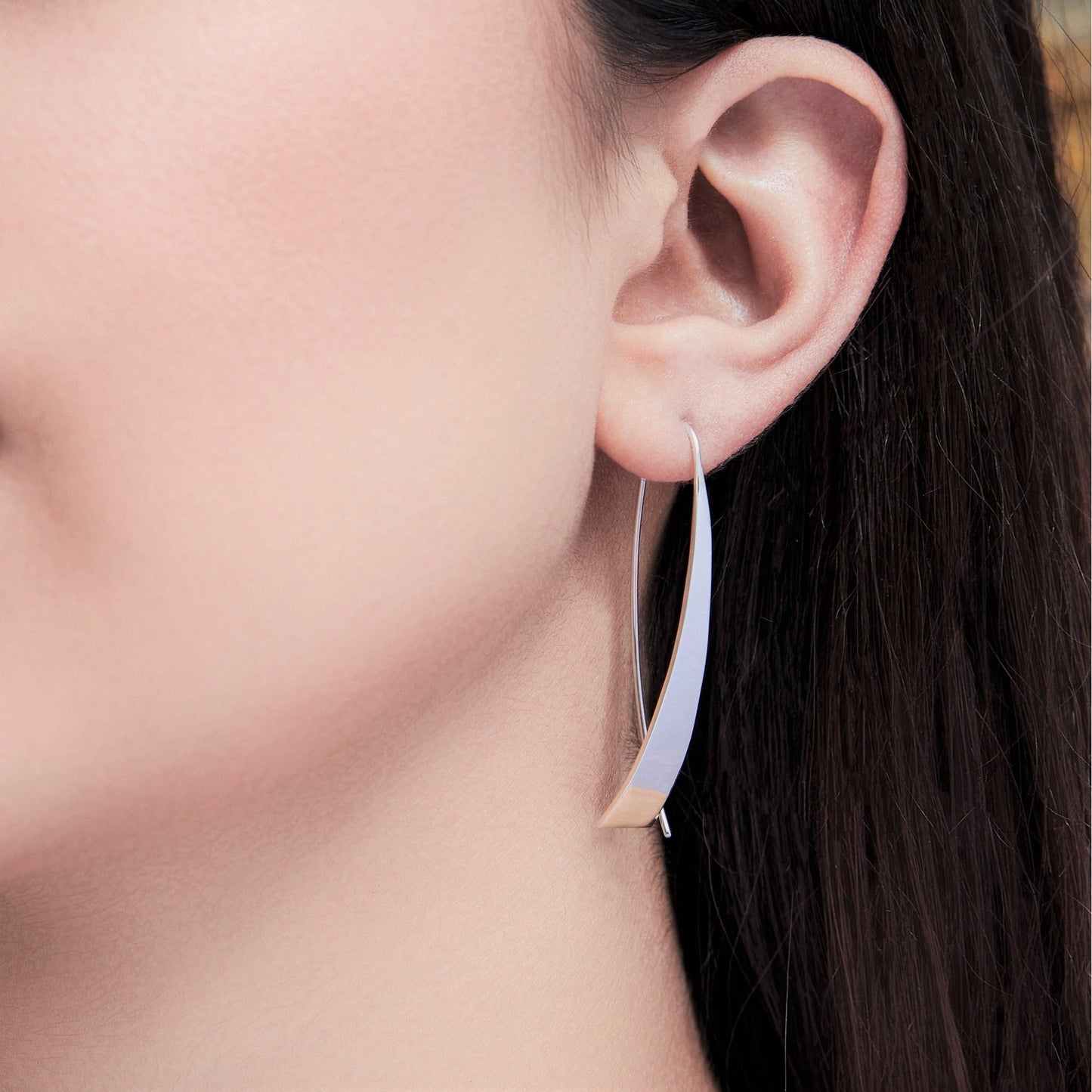 Elliptical Rose Gold Drop Sterling Silver Earrings