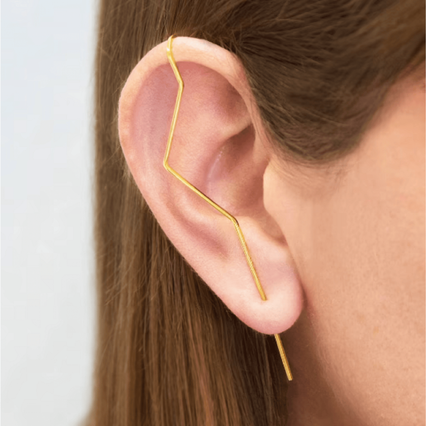 The quirky Zig Zag Drop Earpin Earrings are hand-crafted from sterling silver wire and plated with 18kt gold in our UK workshop for an unusual and standout design.