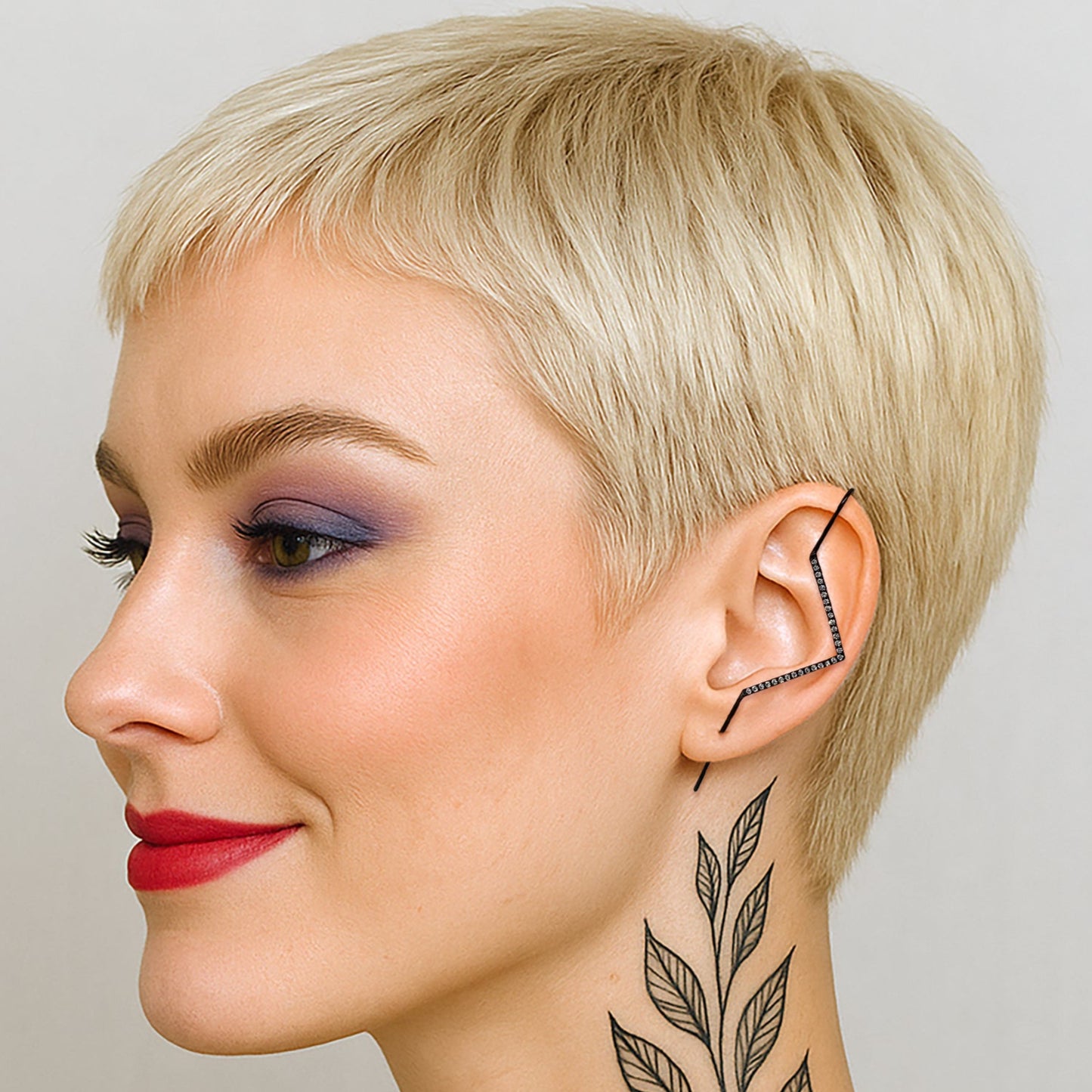 The ultimate geometric statement piece, these Silver Zig Zag Ear Cuff Earrings are set with glistening pave white topaz gemstones which catch the light beautifully, and as November's birthstone make a great gift for those born in that month.