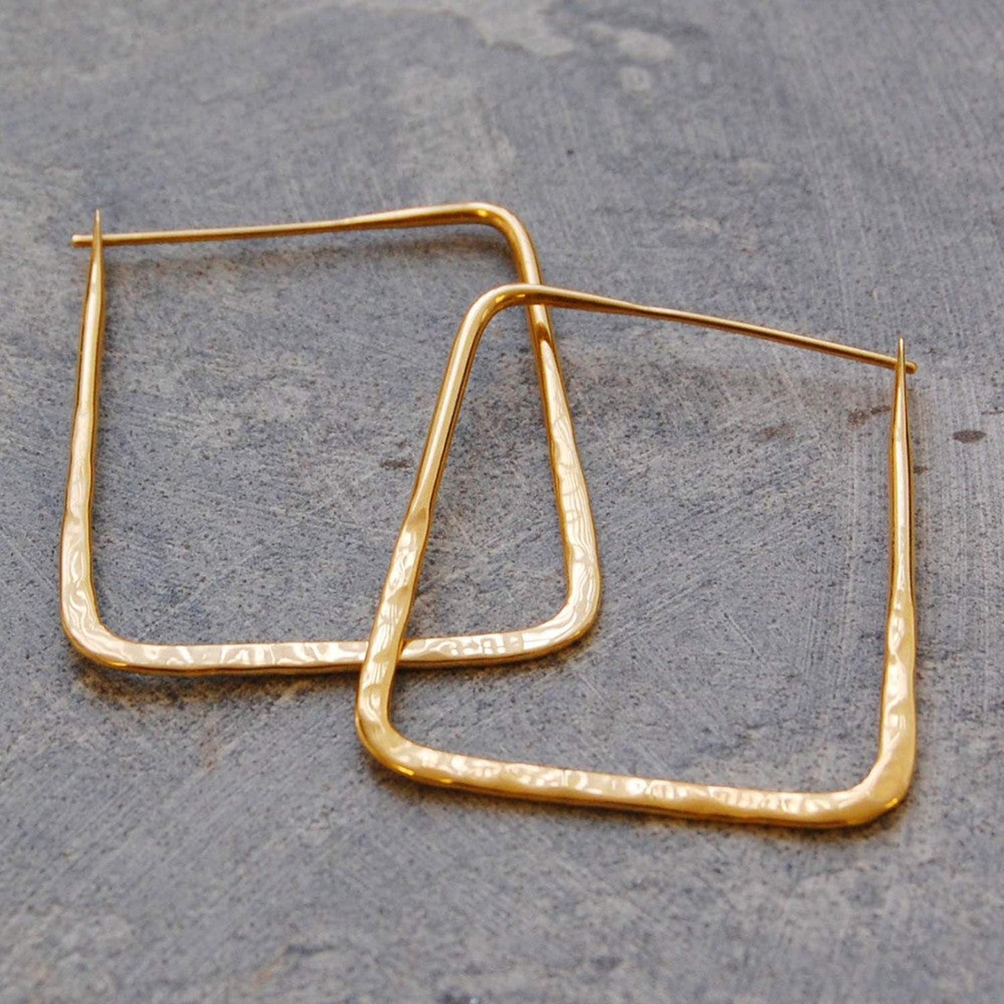 A refreshing and contemporary slant on the classic hoop earring these Hammered Square Geometric Silver Hoop Earrings are slightly hammered to give a glittering, sparkly finish.