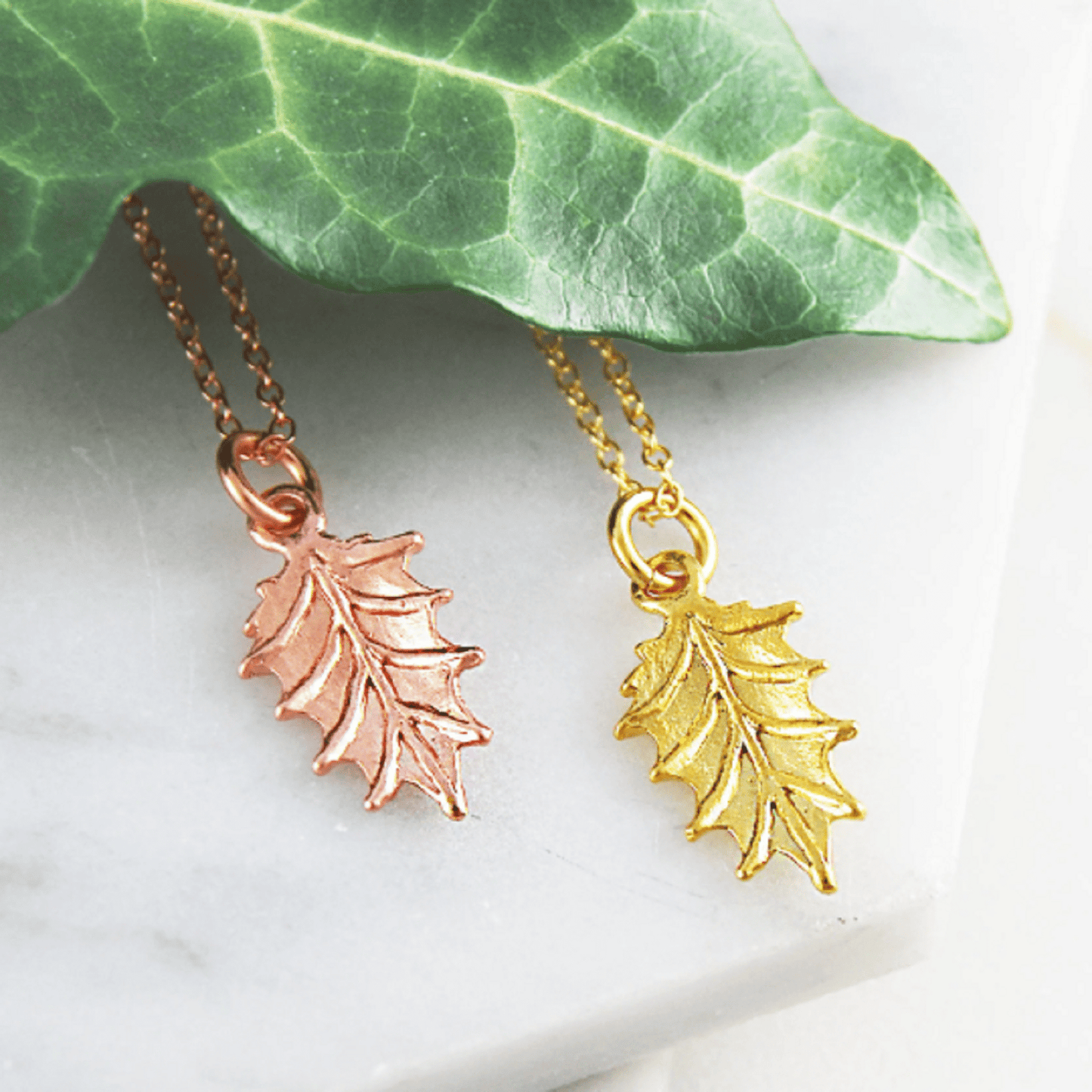 Holly Leaf Rose Gold Stud Earrings - Otis Jaxon Silver Jewellery