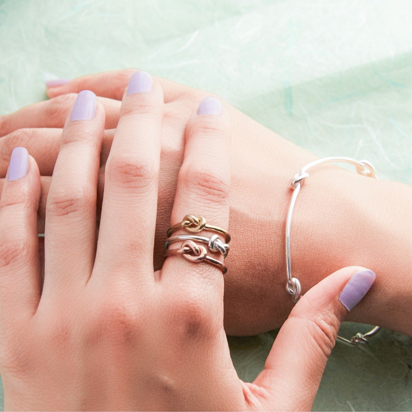 A winning design with all stylish women - even if they are not boaty types! This stunning delicate Friendship Gold plated Sterling Silver Eternity Ring features a handmade polished knot - the perfect jewellery accessory for any season!