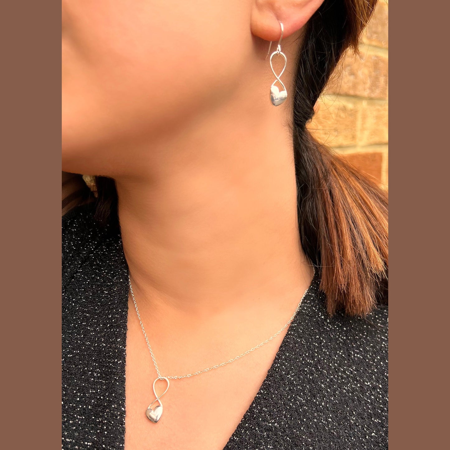 These modern and elegant Heart Silver Infinity Necklace feature an elegant handmade infinity heart motif delicately suspended from an adjustable 18" silver chain.