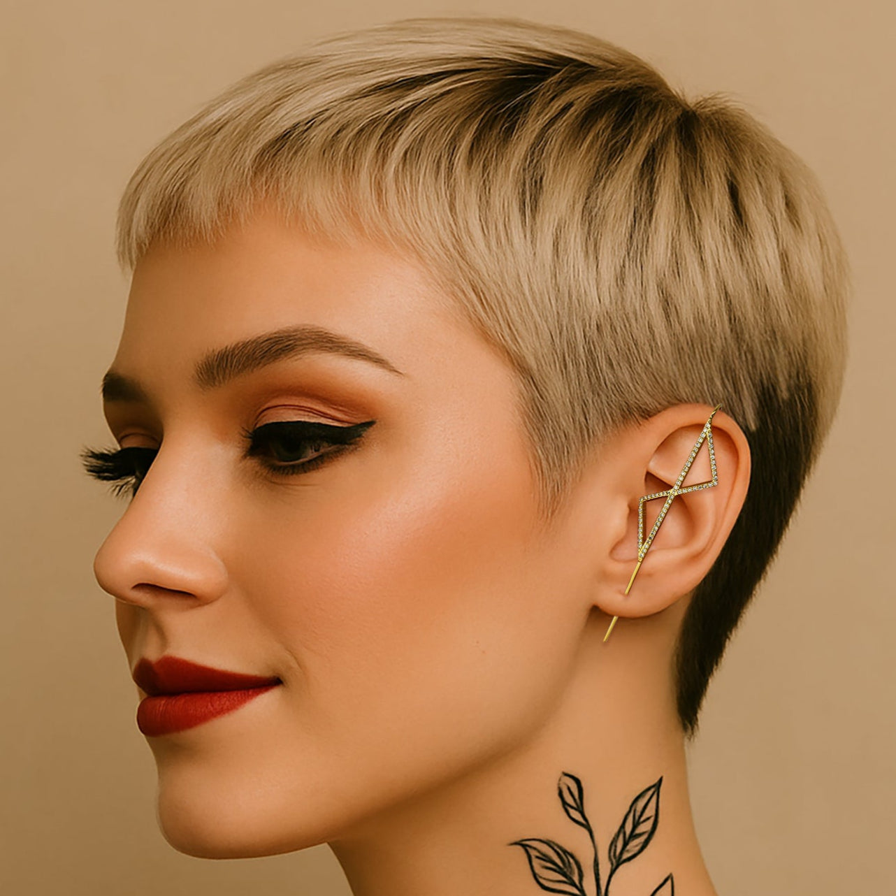Rose Gold Double Triangle Gemstone Ear Cuffs