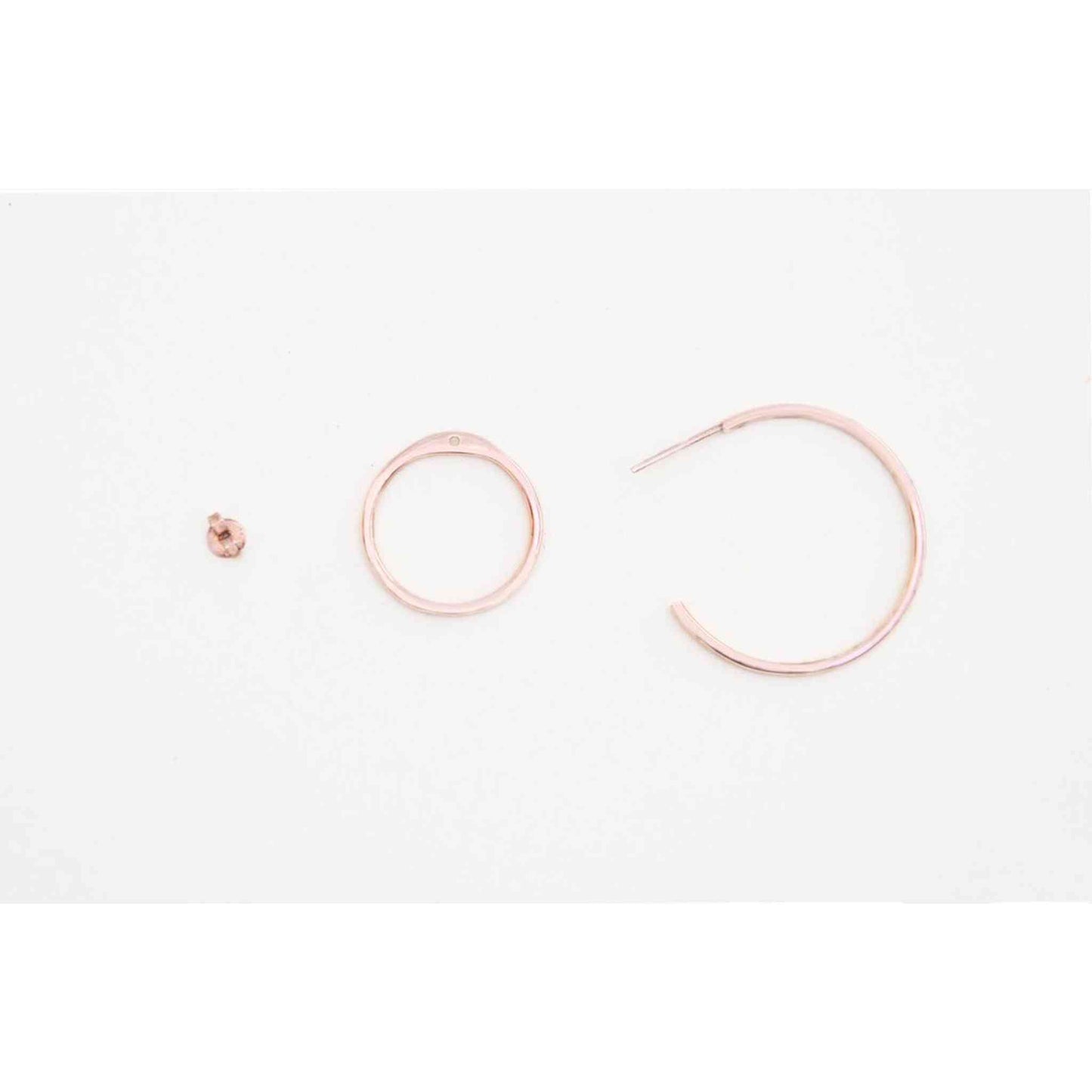 These gorgeous Rose Gold Interlocking Double Hoop Earrings with an elegant finish are adaptable for everyday wear as a classic hoop or add the jacket ring to make a 3 dimensional sphere. Also in 18k Yellow Gold.