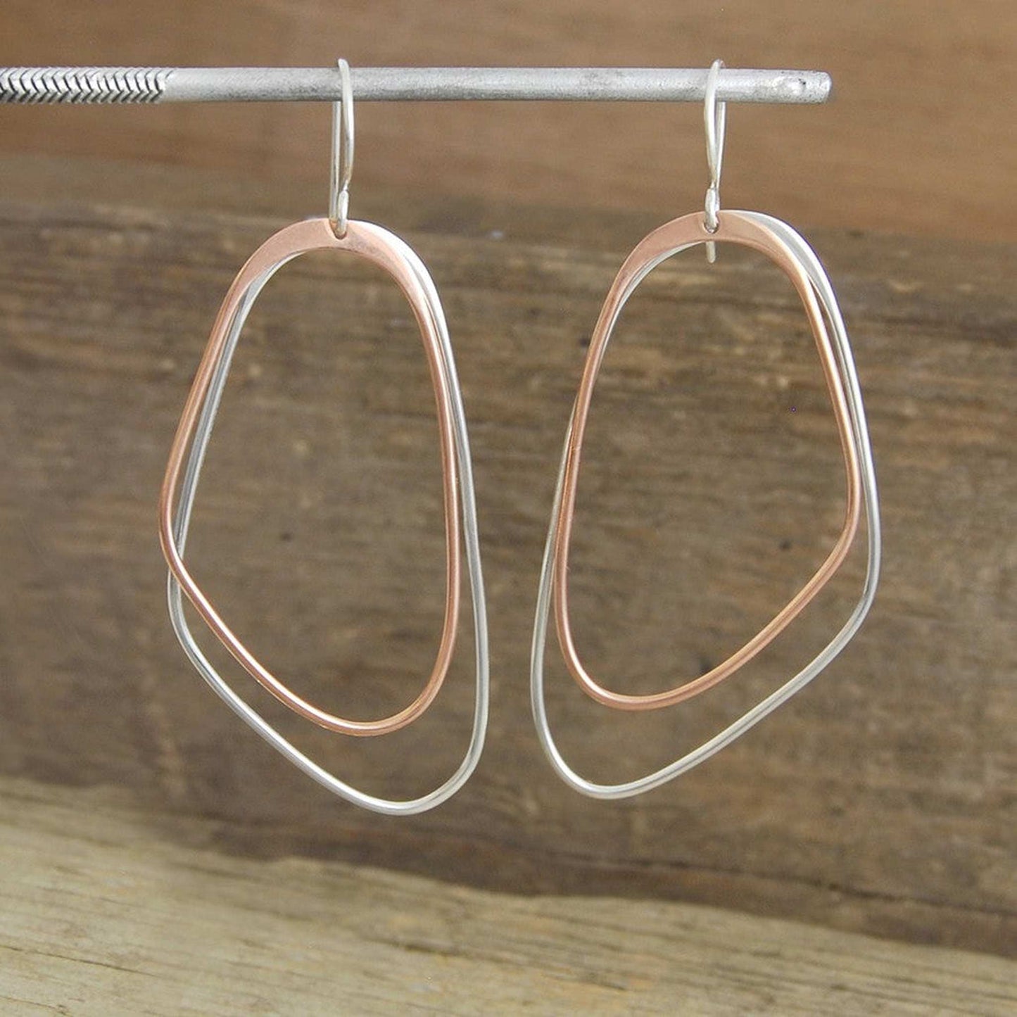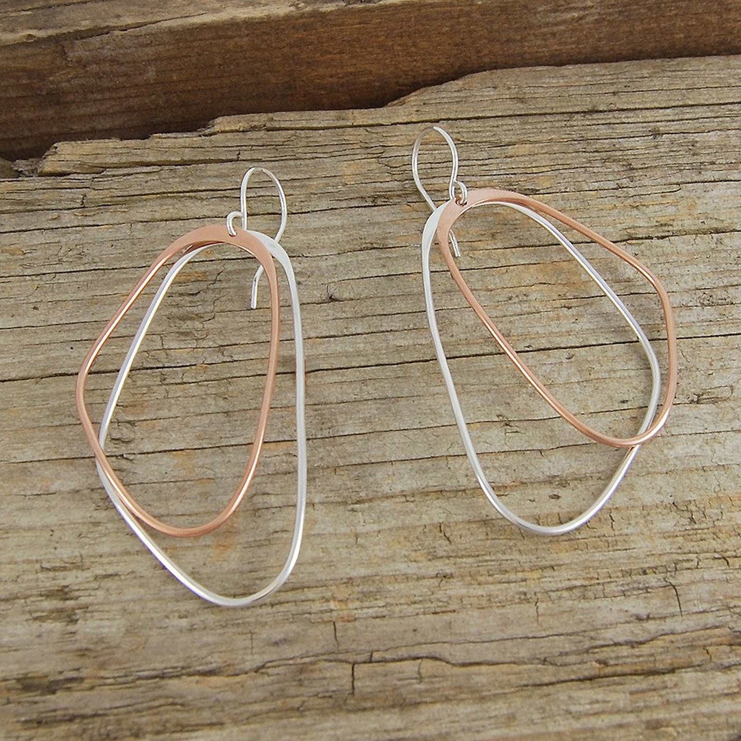 With their on-trend mixed metal design, statement size and irregular shape, these statement Silver and Gold Double Hoop Earrings move beautifully when worn.