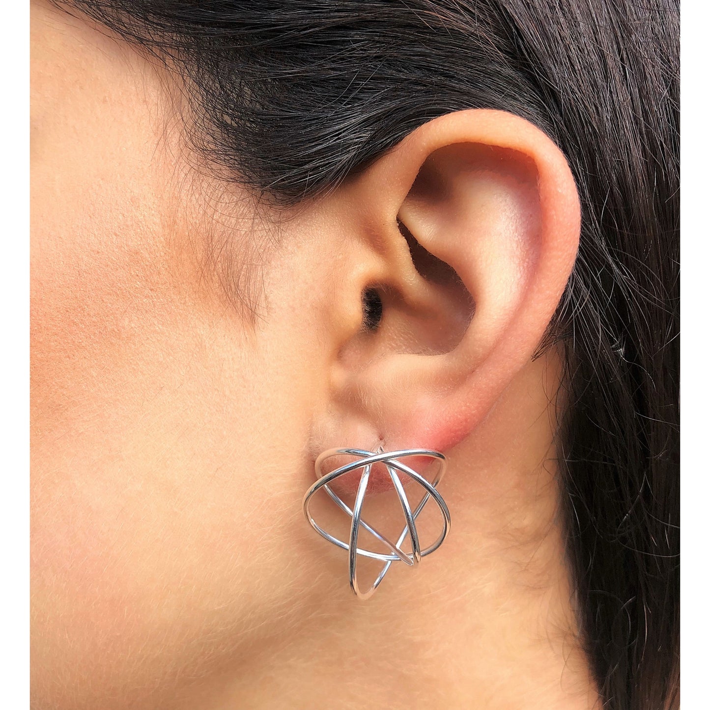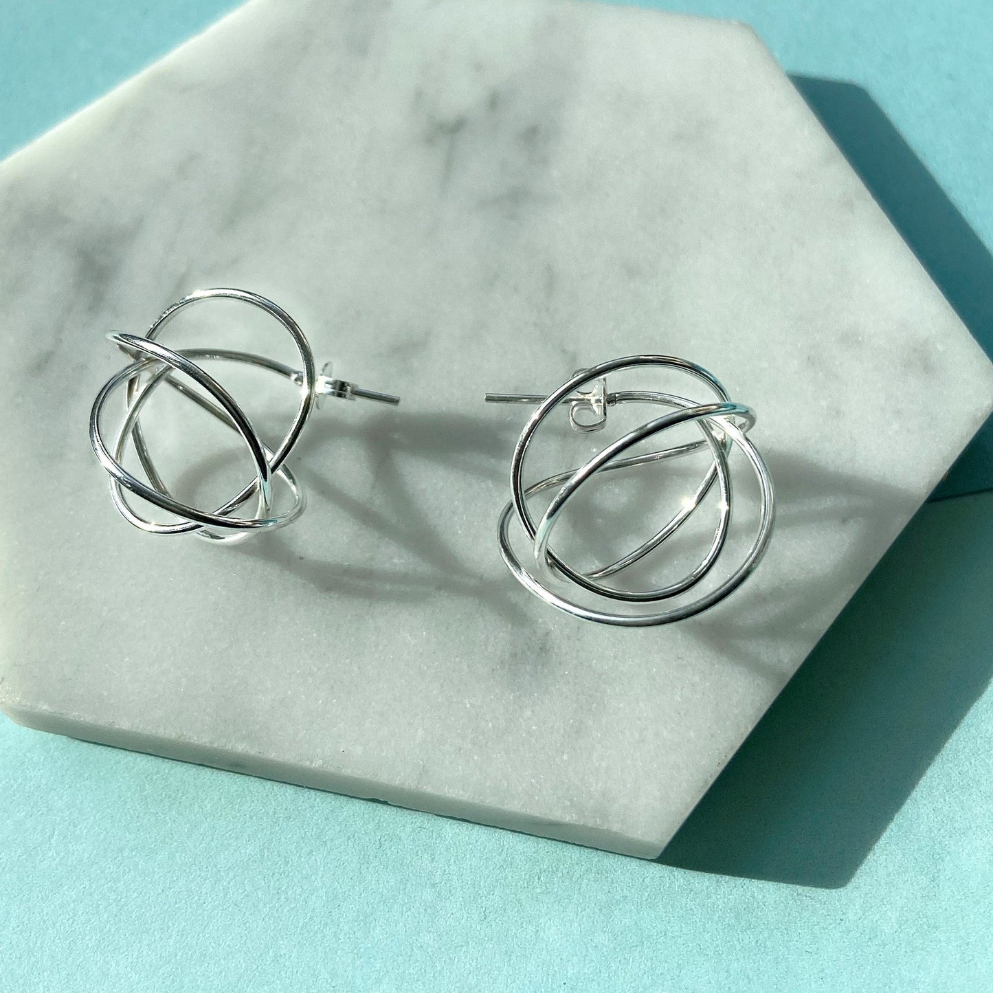 An Otis Jaxon favourite, these sterling silver stud earrings feature silver wire fashioned into an intricate and modern earrings. Truly a contemporary classic.
