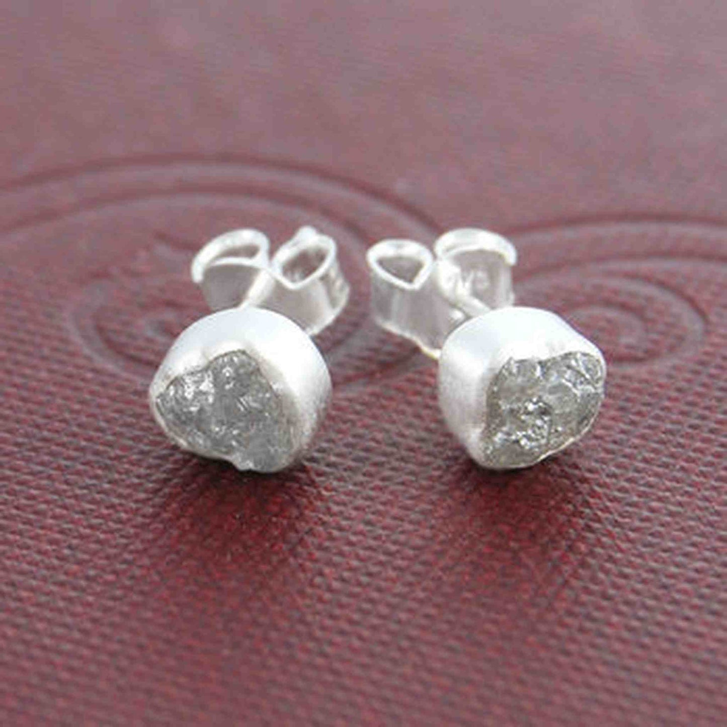 Rough Diamond April Birthstone Rose Gold Stud Earrings