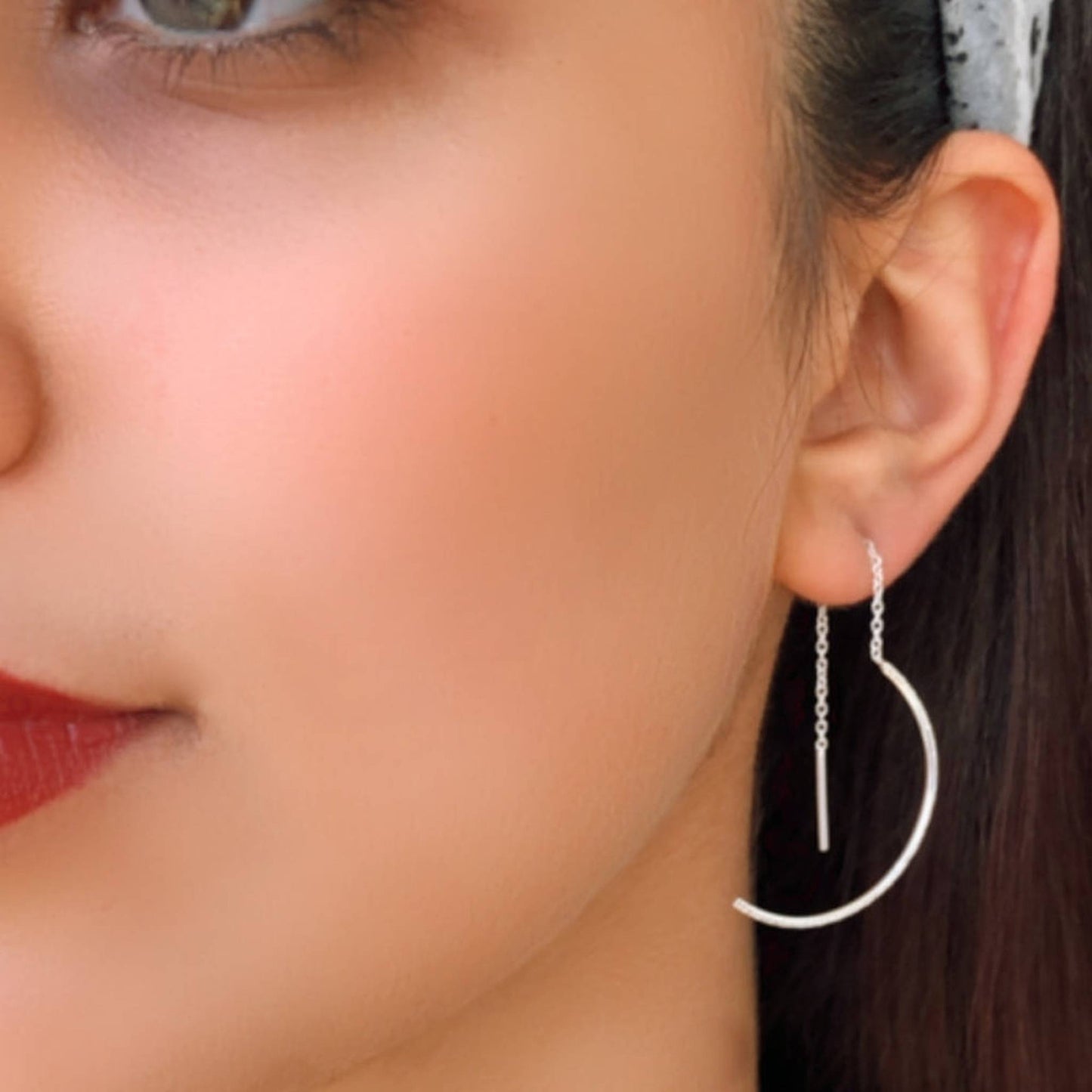 These everyday Half Hoop Sterling Silver Threader Earrings feature a half hoop are fun and easy to wear and will make sure to create some serious wow factor!