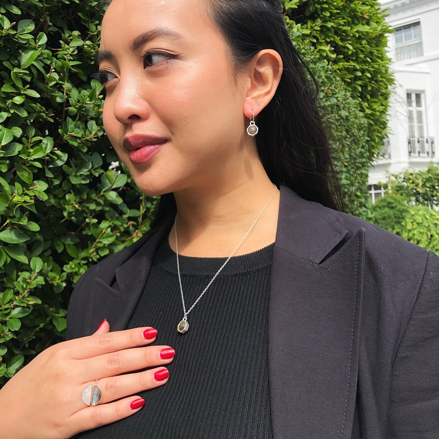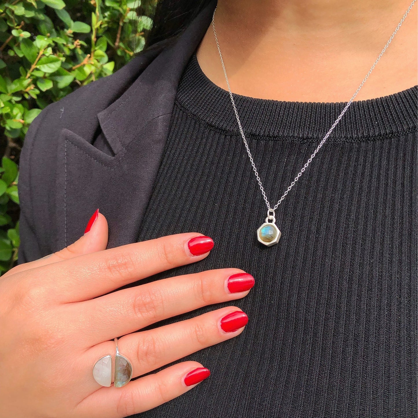 Moonstone And Labradorite Sterling Silver Charm Necklace
