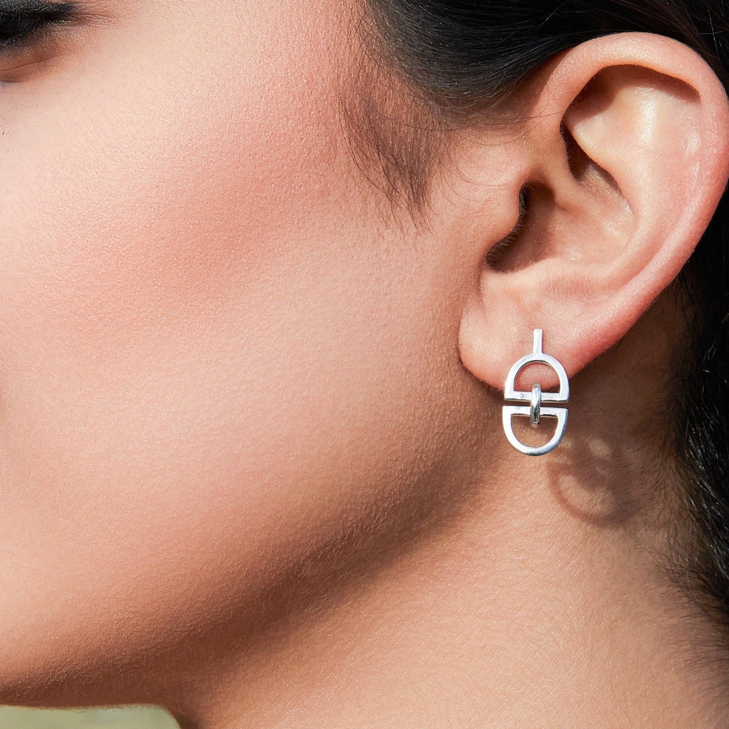 Interlinked 'D' Charm Sterling Silver Stud Earrings