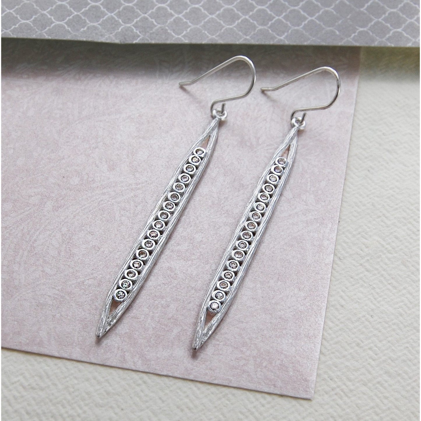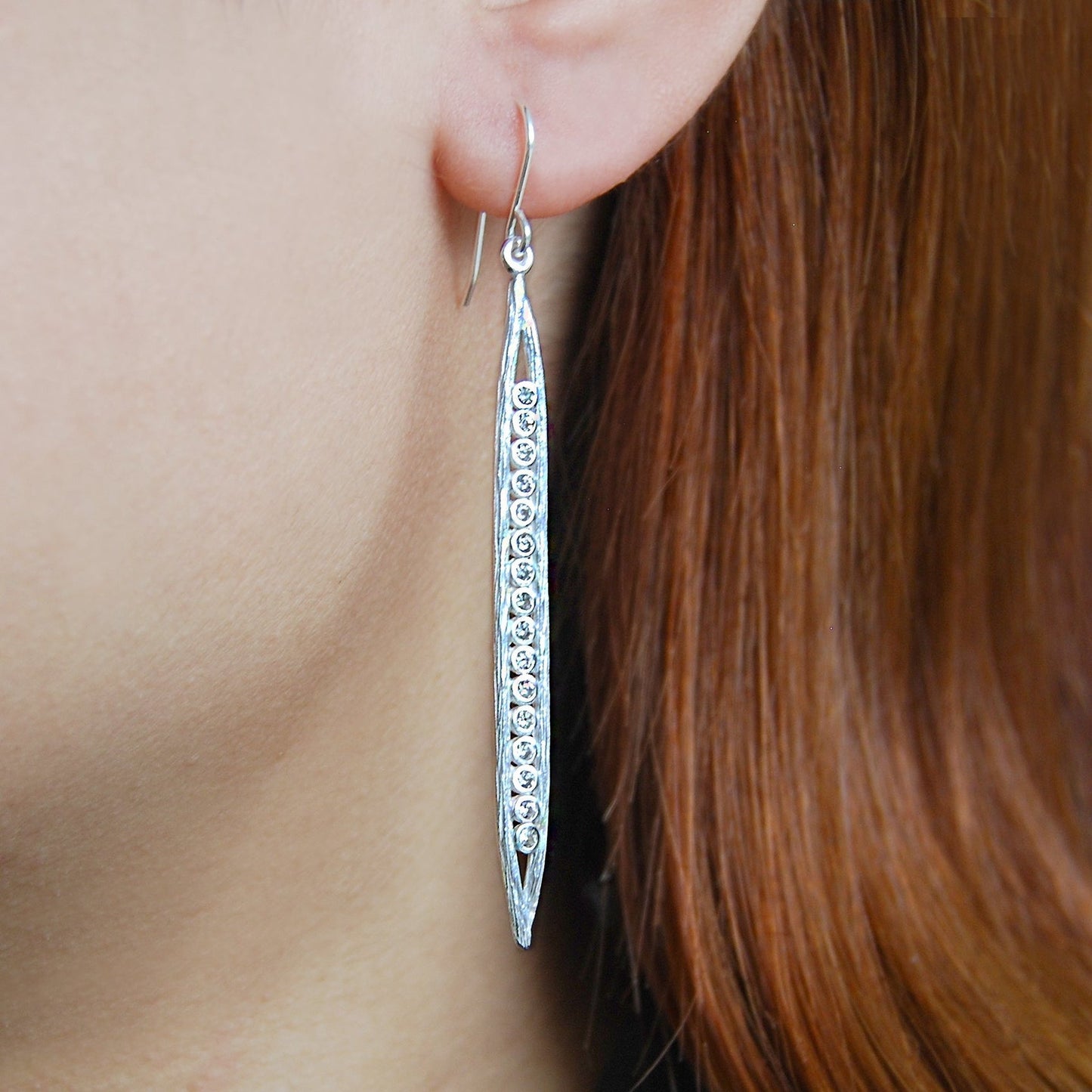A nod to current catwalks, designer fashions and crafted from sterling silver, these are lovingly set with delicate precious white topaz stones that glint beautifully in the light.