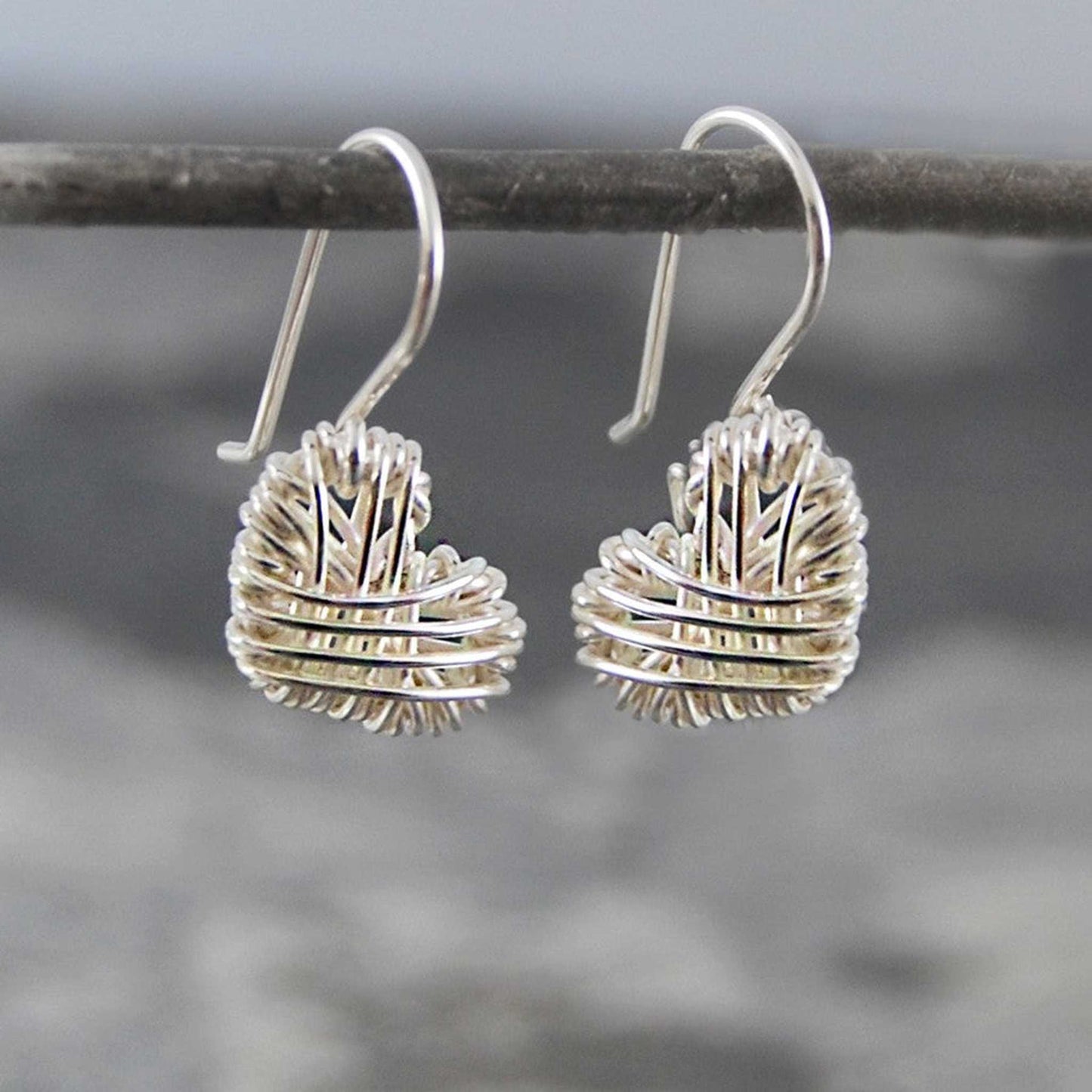 Created literally by ‘weaving’ sterling silver wire around a heart shaped frame. No two of these Silver Woven Heart Drop Earrings is the same and yet Alberto - the silversmith - maintains a consistency of form and pattern throughout.
