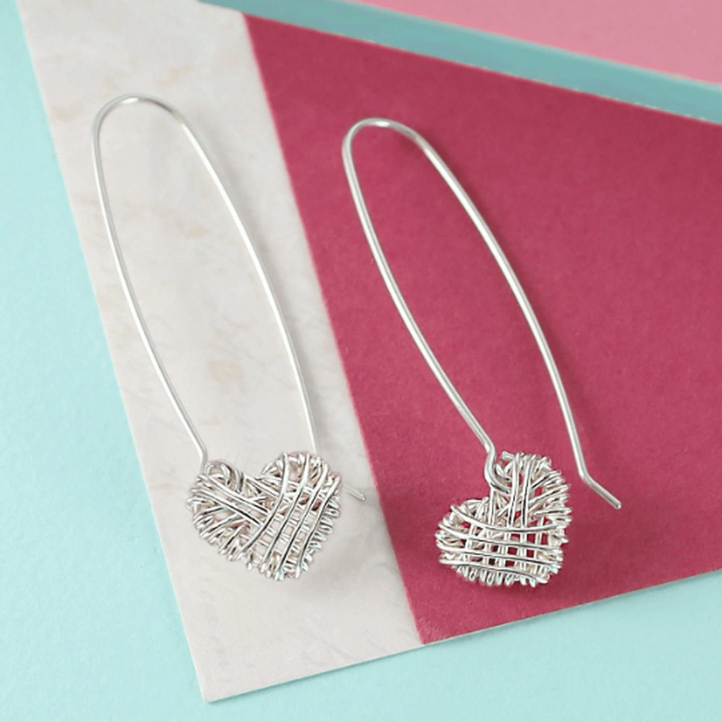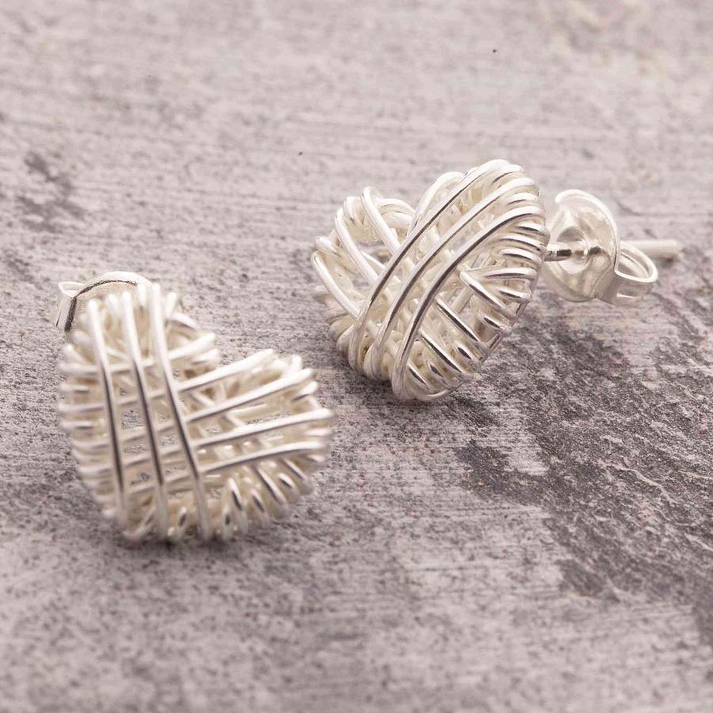 In this range - Woven Silver Heart Long Drop Earrings, Woven Heart Silver Stud Earrings, Woven Silver Heart Pendant Necklace.